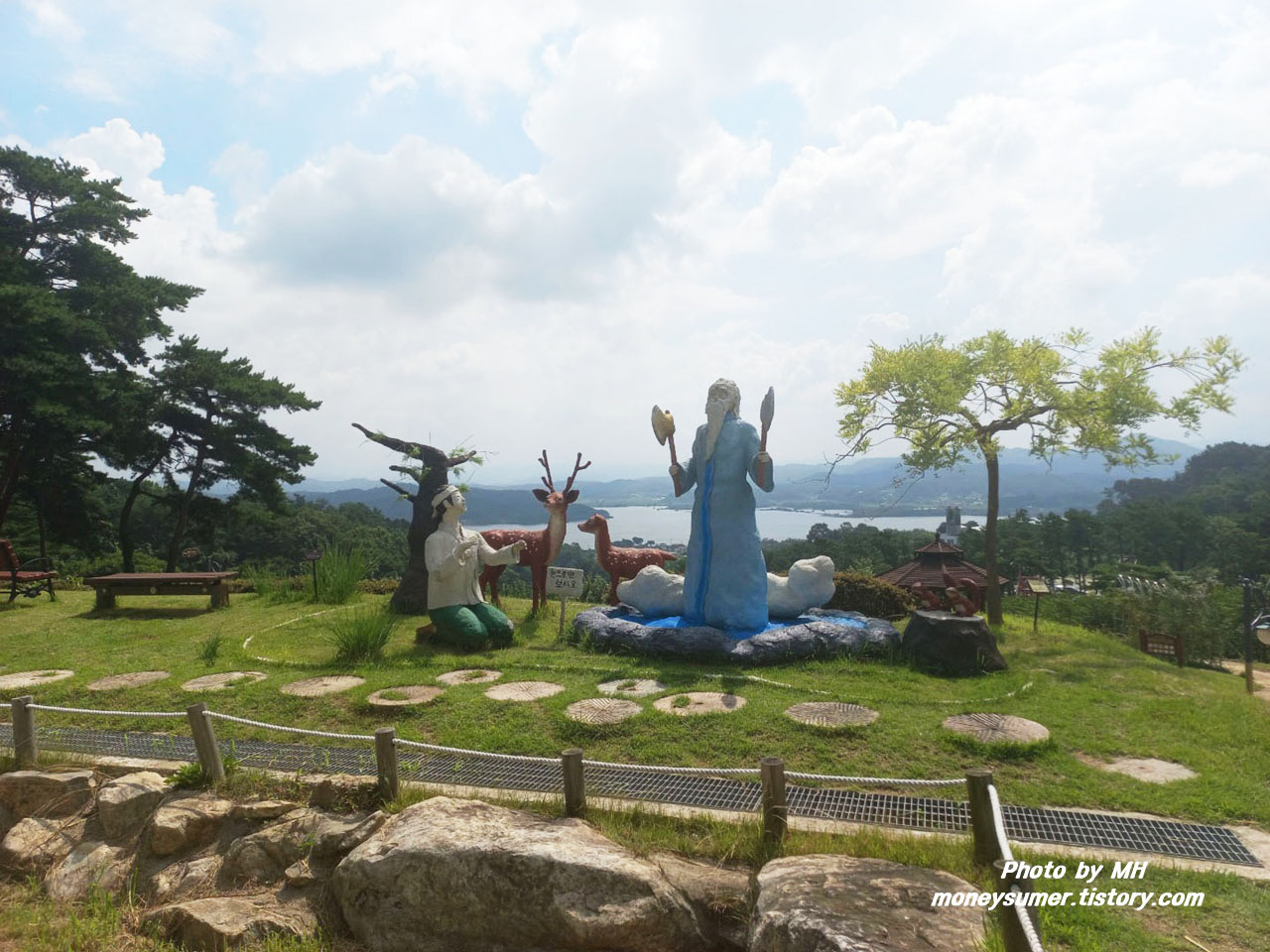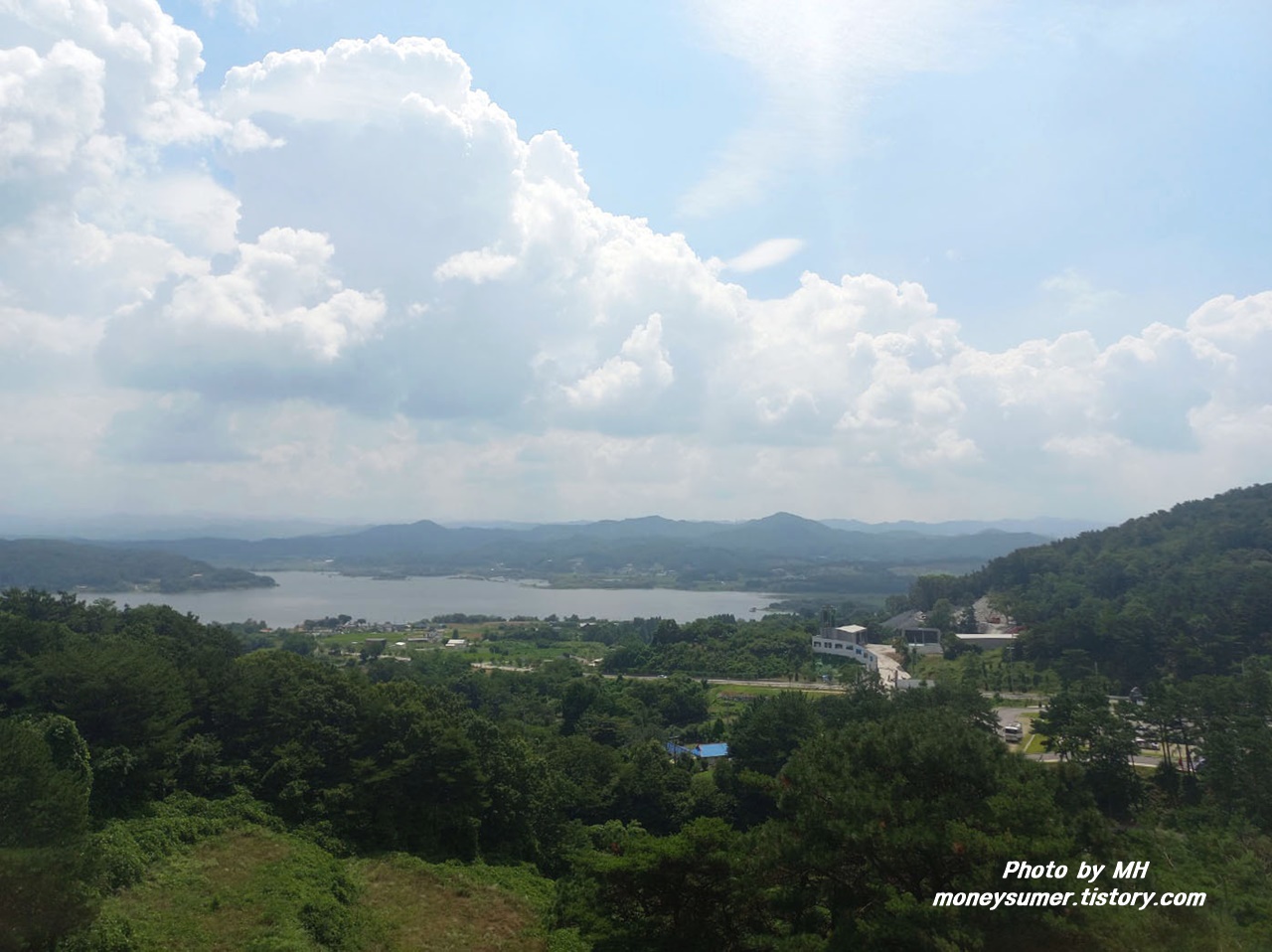 이솝우화에 수록된 고대 그리스의 전래동화인 「금도끼 은도끼」를 연상케 하는 형상이 예당호와 함께 어우러져 멋진 경치를 보여주고 있어요~