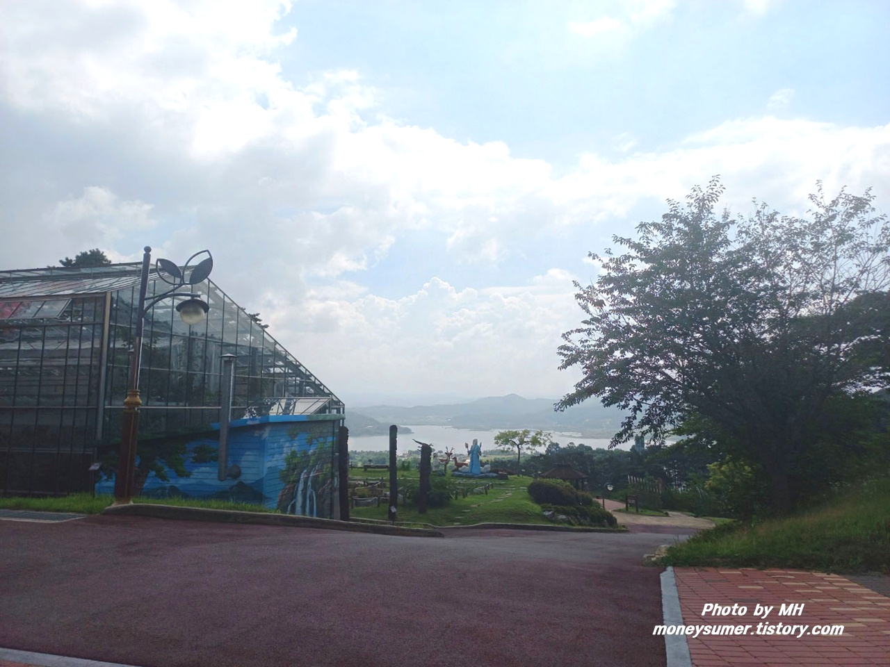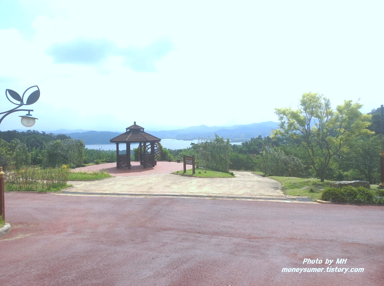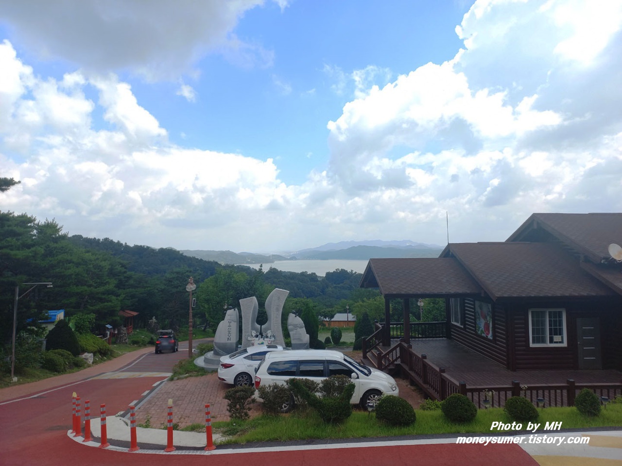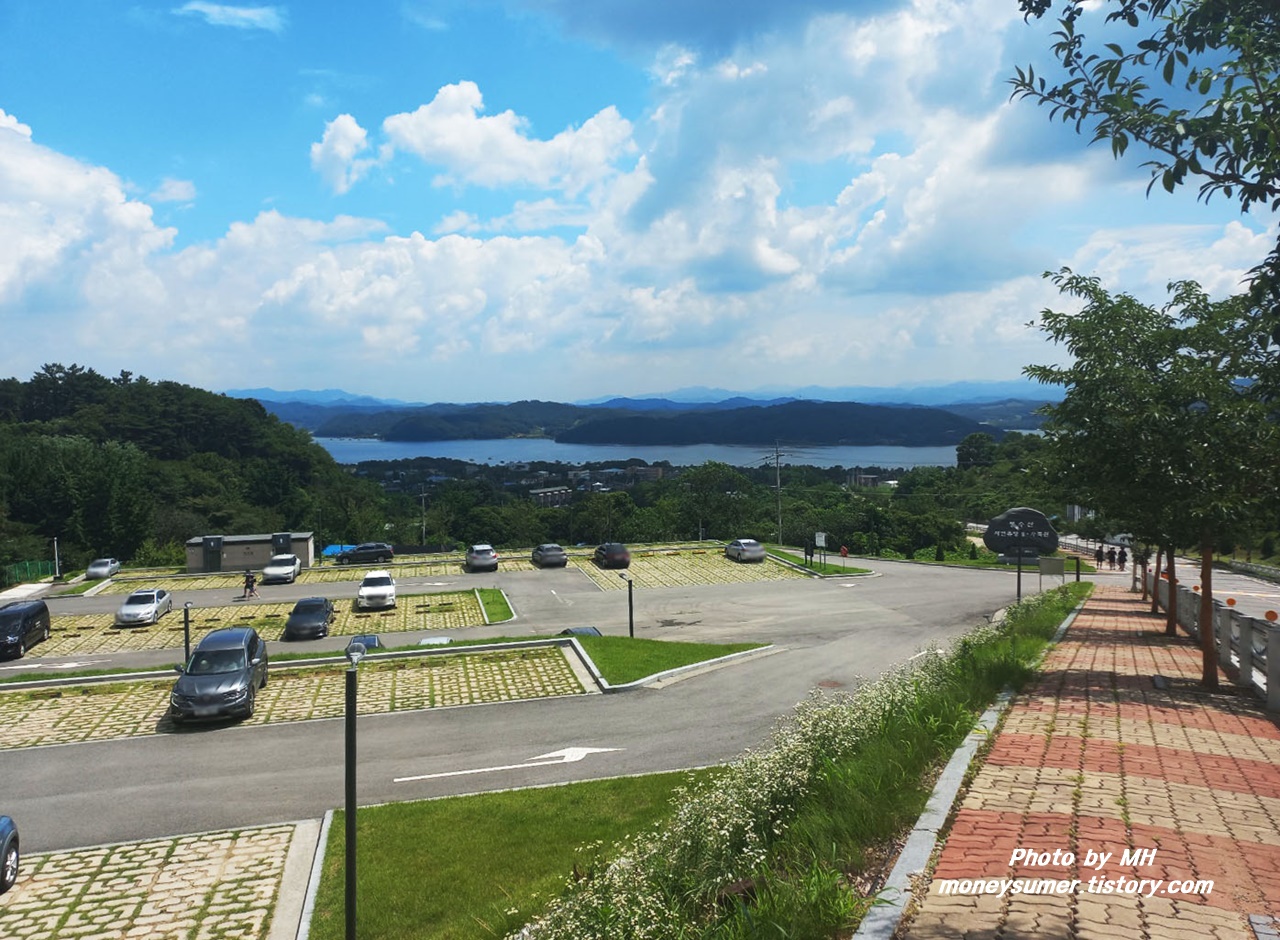 예당호까지 보이는 넓은 주차장부터 마음에 드네요. 주차장의 주변 경치가 너무 아름다워서 한동안 눈을 못 떼게 만들더라고요~