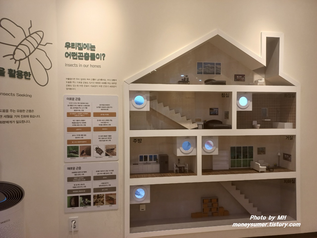 우리 집 공간마다 어떤 곤충들이 있을지 설명되어 있어요. 이로운 곤충들도 있지만 일단 집에서 곤충을 보는 건 반가운 일은 아니긴 하죠~😅