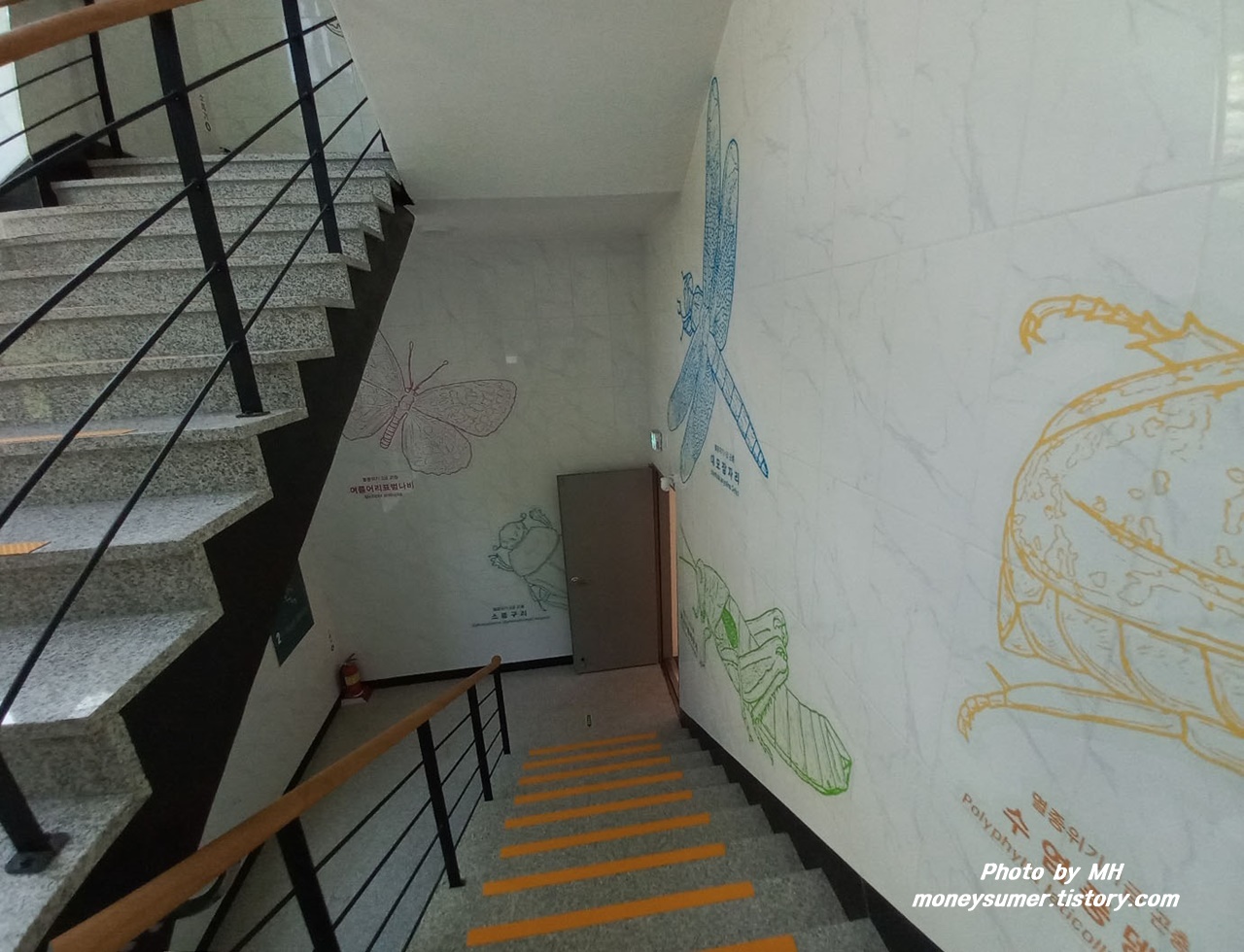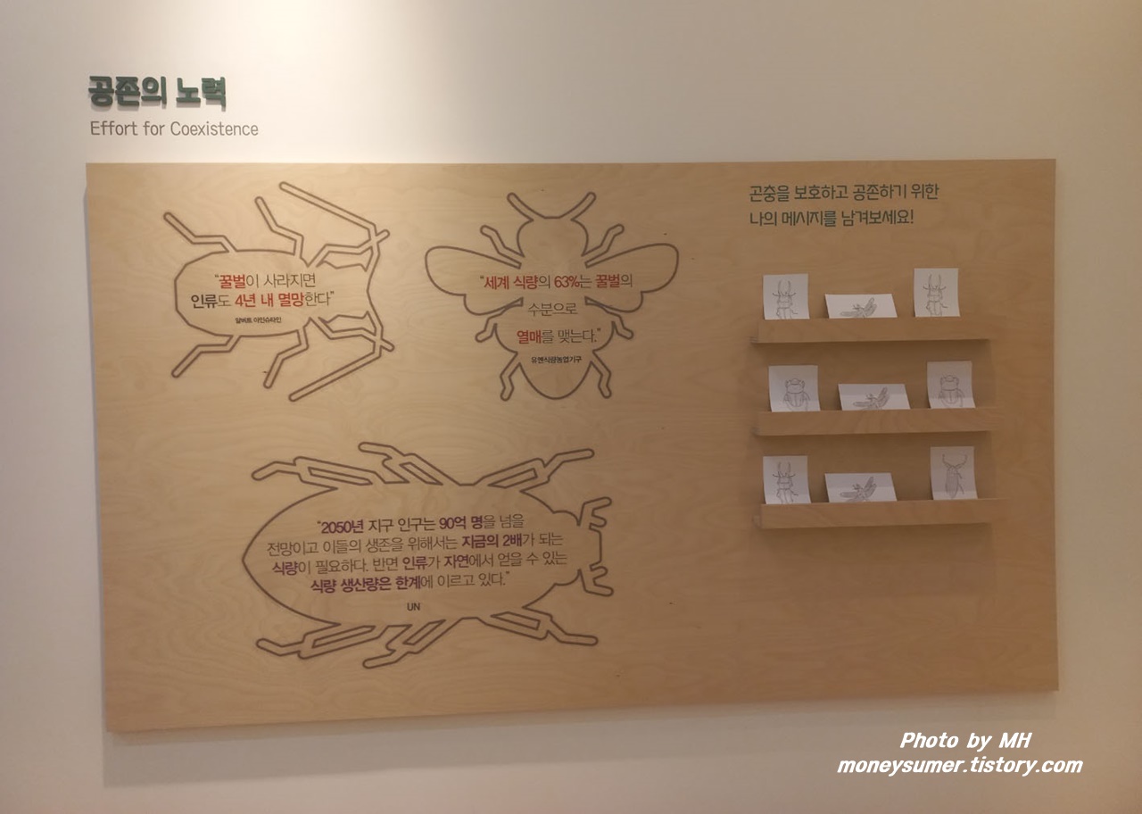 수석 구경을 마치고 하늘데크로 가려는데 곤충생태관이 연결되어 있어서 먼저 가보았어요. 복도 벽에도 곤충들이 그려져 있어서 신기했어요~