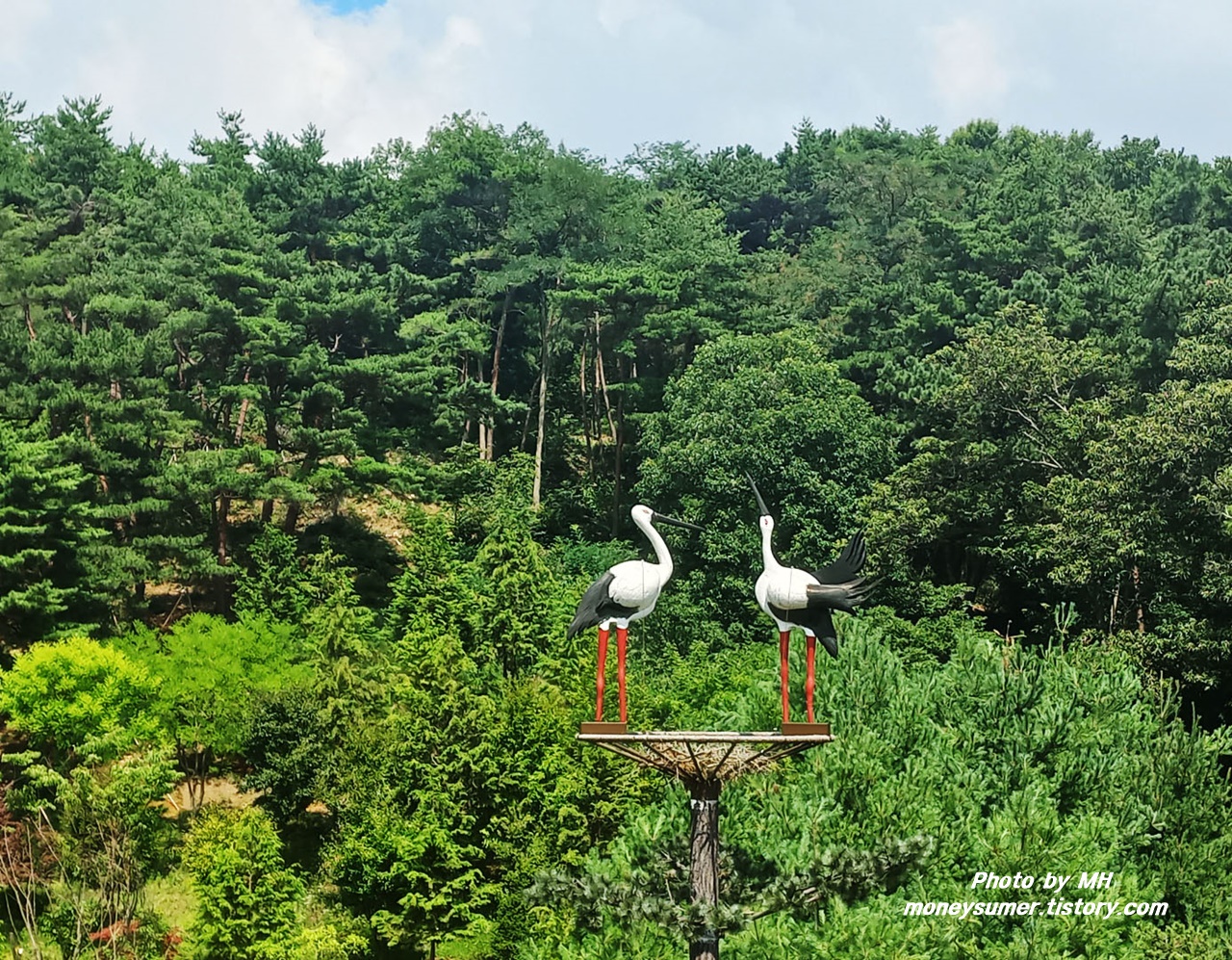 13m 높이에 있는 황새조형물도 볼 수 있어요. 황새는 천연기념물 제199호이자 환경부에서 지정한 멸종위기종 1급이랍니다. 살아있는 황새를 관찰하고 싶은 분은 예산 황새공원을 방문하시면 된다고 하네요~