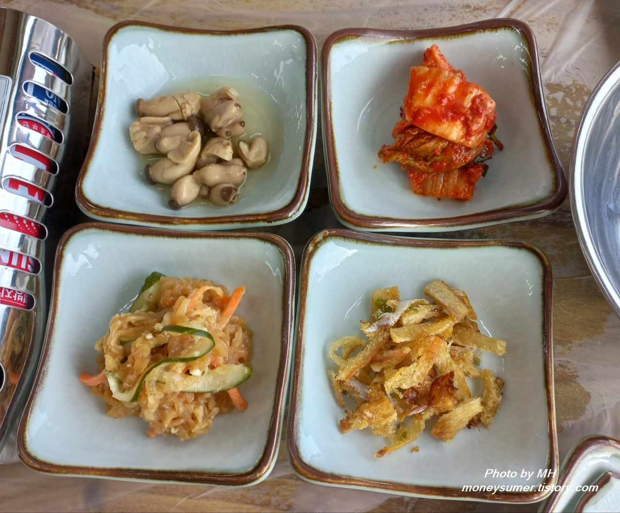 밑반찬은 버섯볶음, 배추김치, 해파리, 명태채가 나왔어요. 반찬이 맛있어서 주문한 메뉴 나오기 전에 반이상을 먹어버렸네요~😃