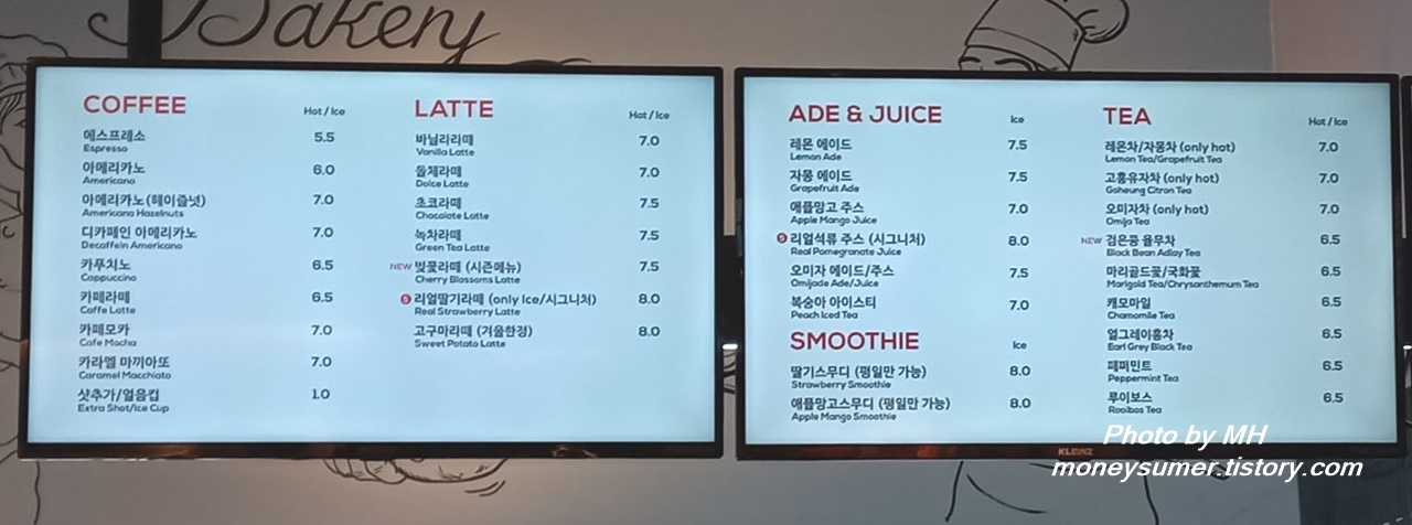 요즘 하도 빵 가격이 많이 올랐기 때문에 빵 가격은 나쁘지 않다고 생각했는데 음료 가격은 센 편이더라고요~