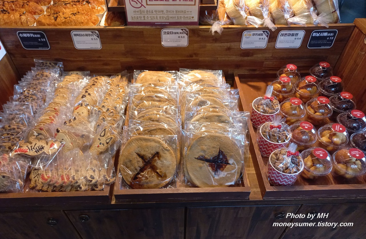 스노볼, 바게트류, 쿠키류, 레몬 마들렌 등 예쁘고 먹음직스러운 빵들이 정말 많네요~