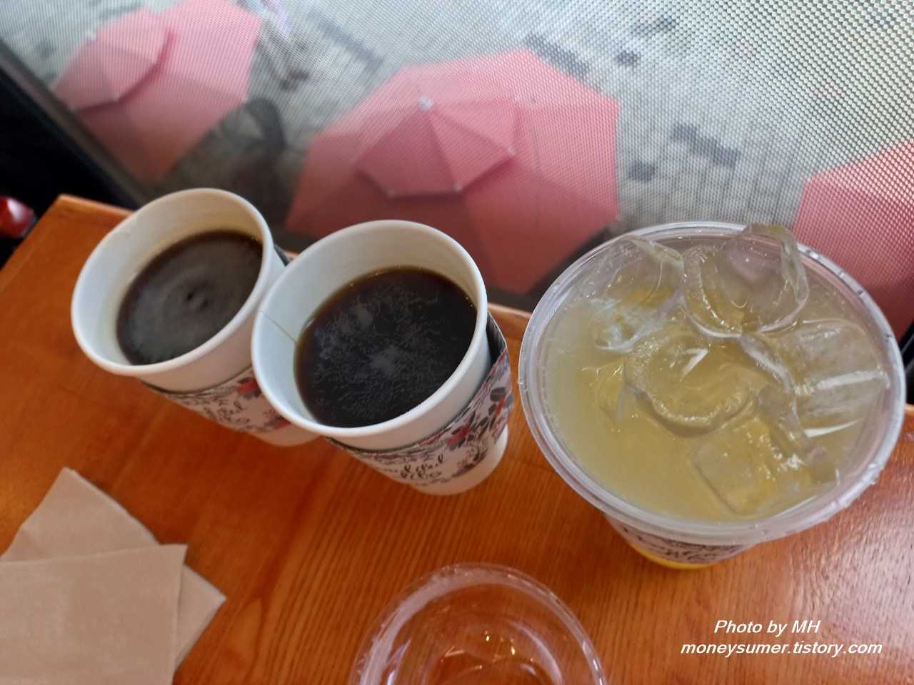 카페 구경을 모두 마치고 주문한 음료를 마셔봤어요. 아메리카노(6,000원), 레모네이드(7,500원) 모두 가격이 비싼 만큼 맛을 기대했었는데 아쉽게도 기대에는 못 미치더라고요~😐