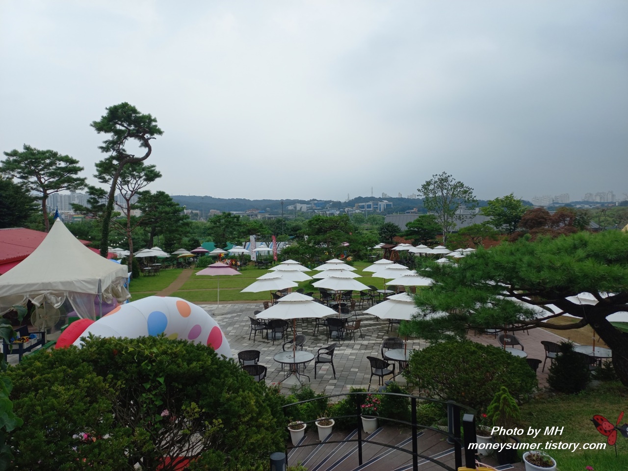 아래를 내려다보니 여러 곳에 테이블이 놓여 있네요~