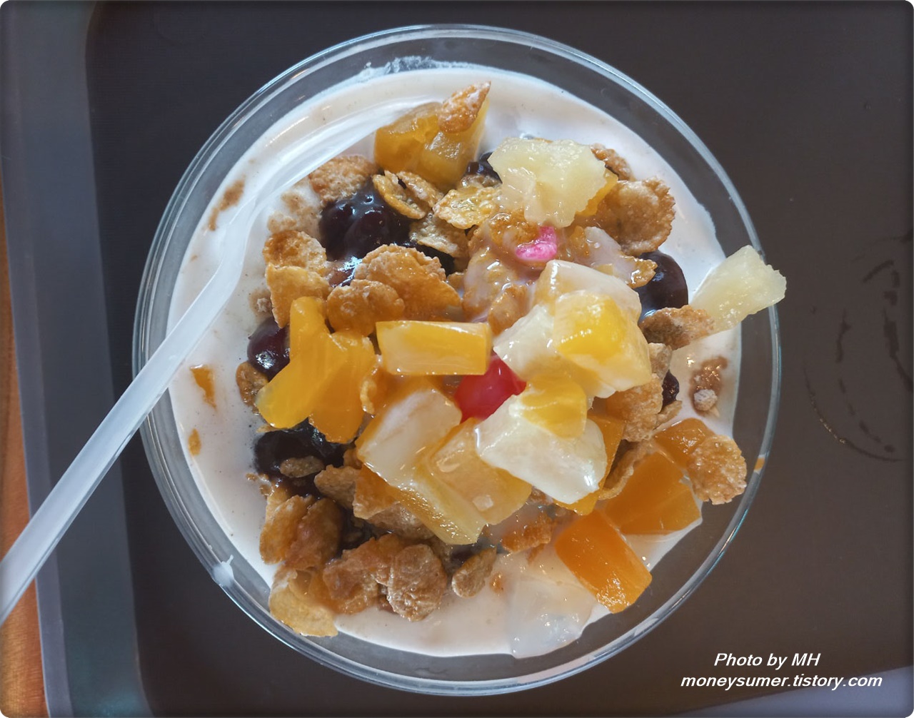 '밭빙수도 괜찮겠지'라고 생각하며 먹어본 밭빙수 맛은 그냥 그랬어요. 너무 더워서 시원만 맛에 먹는 정도일 뿐...