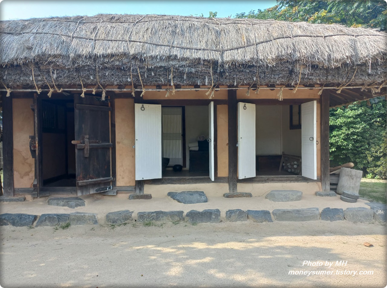 기와가 아닌 볏짚으로 되어 있어서 약해 보여요. 또한 방도 두 개뿐이라 대가족이 살았다면 매우 불편했을 것 같아요~