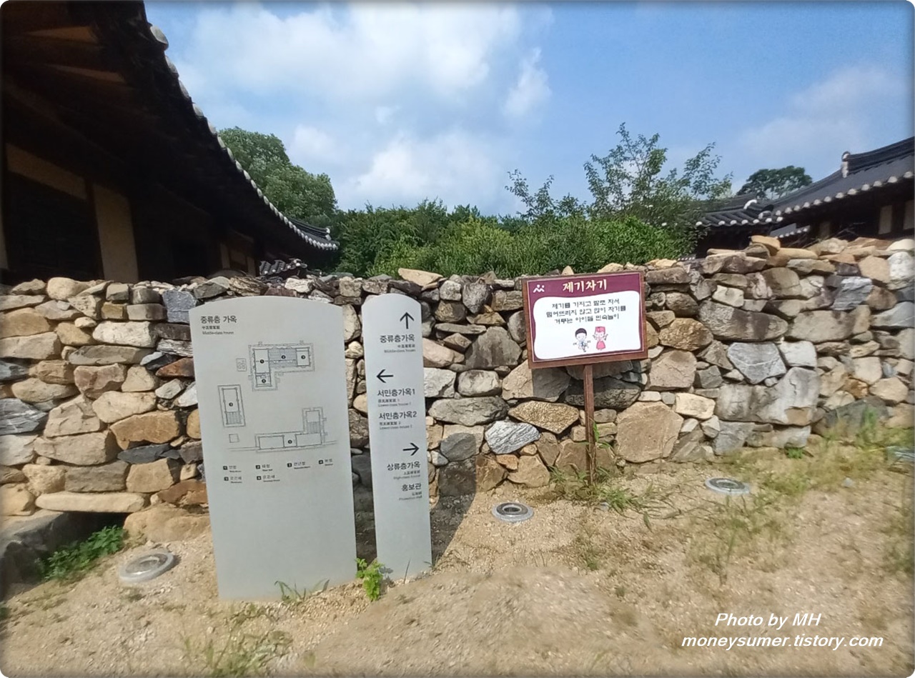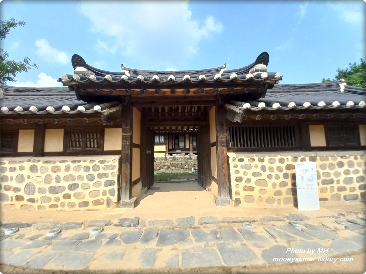 외암마을은 예안 이 씨 중심으로 구성된 마을로 서쪽의 마을 어귀는 낮고 동쪽의 뒤로 갈수록 높아지는 동고서지(東高西低)의 지형조건을 갖추고 있답니다.