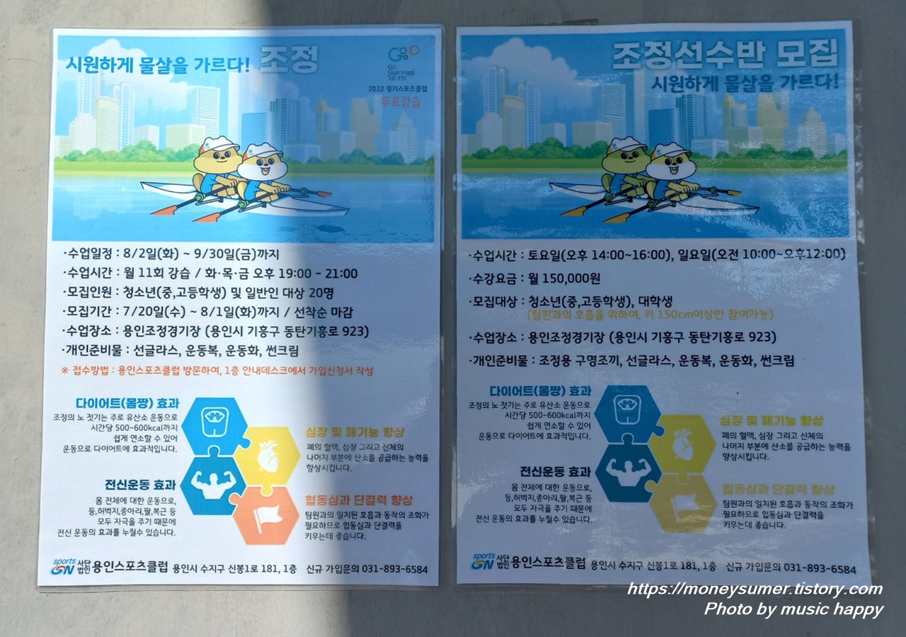 8/2일부터 9/30일까지 청소년 및 일반인 대상으로 조정 교육을 진행 중에 있고 조정 선수반도 모집을 하고 있네요.