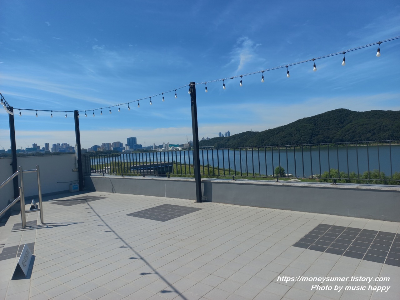 이곳은 좁은 공간이고 테이블도 놓여있지 않았어요. 그냥 호수만 바라볼 수 있는 정도네요~