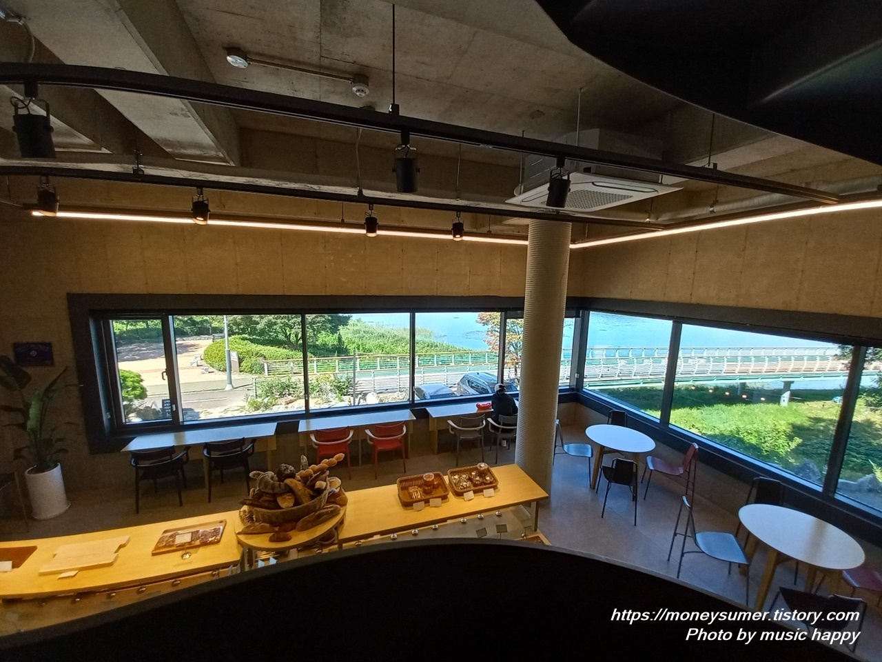 2층은 카운터, 빵 진열대 그리고 창문 주변으로 테이블이 놓여 있고