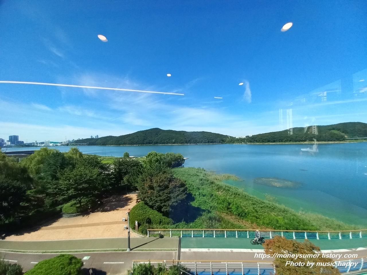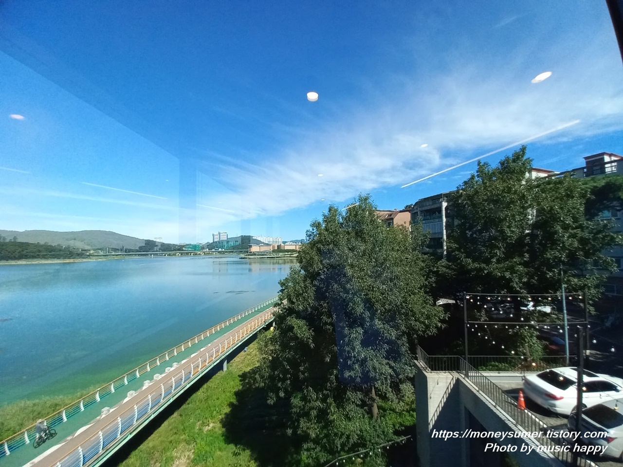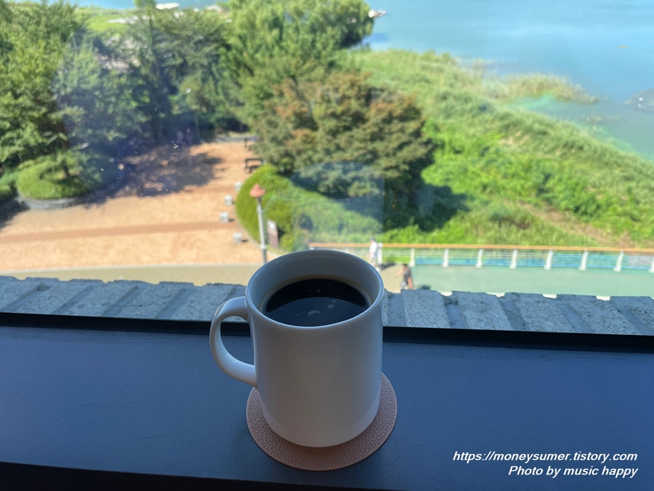 카페에서 바라보는 호수 뷰는 색다른 느낌이 나네요~