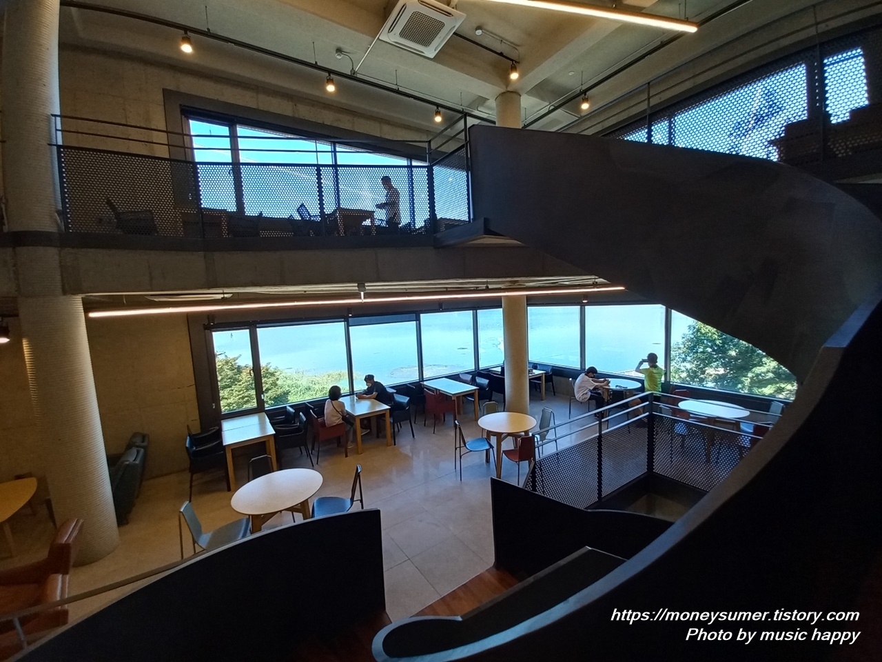 1층부터 4층까지 모두 호수앉기 건물이에요. 산책을 했더니 더워서 오픈되어 있는 1층보다 시원한 실내로 들어갔어요~