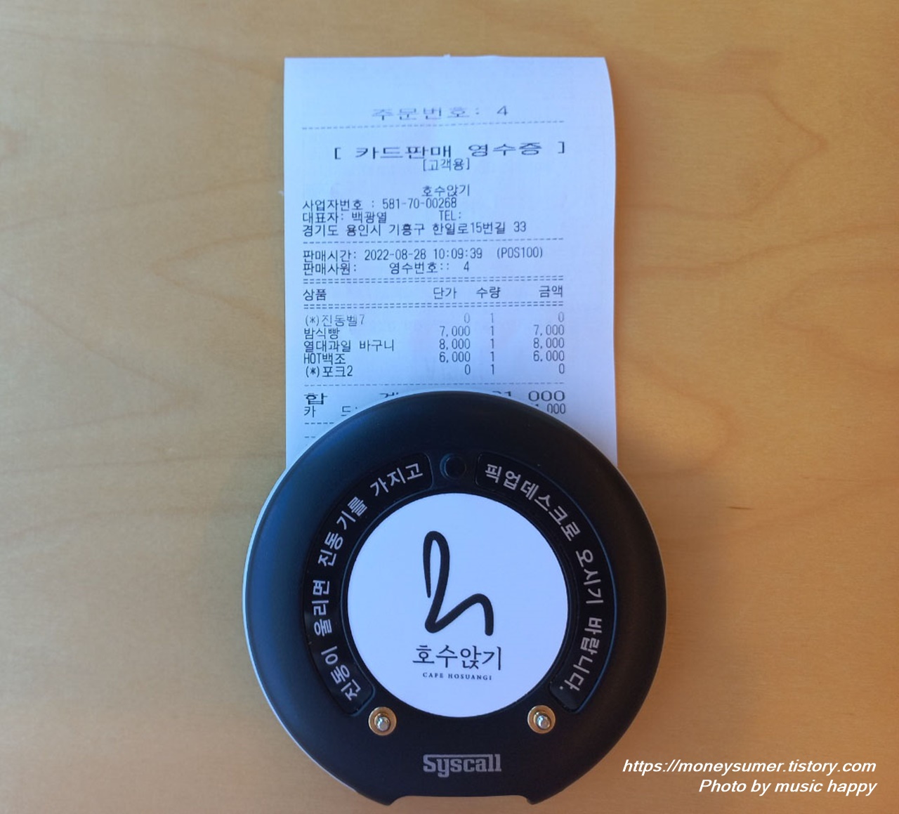 카페 실내 구경과 호수 뷰를 바라보고 있다 보니 진동벨이 울려서 주문한 음료를 가져왔어요~