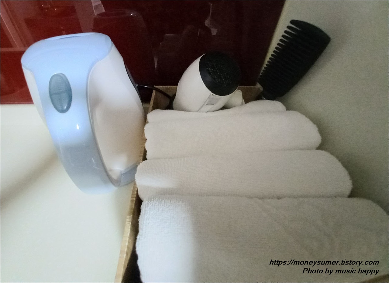 전기포트와 드라이, 빗과 수건이 넉넉히 준비되어 있네요~