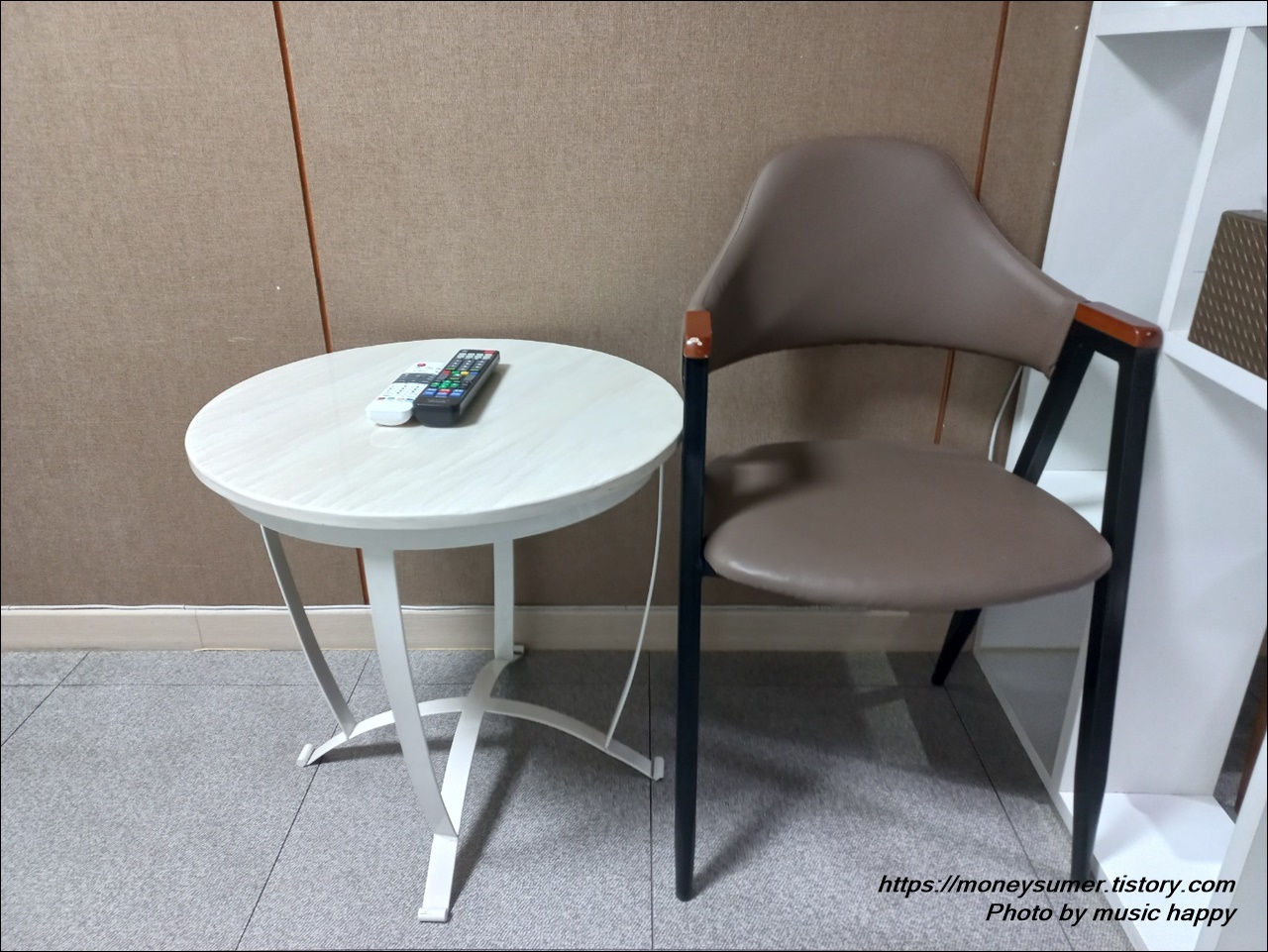 조그마한 테이블이 있는데 의자가 하나만 있어서 한 사람은 서 있거나 침대에 앉아야 하는 불편함이 있네요~~