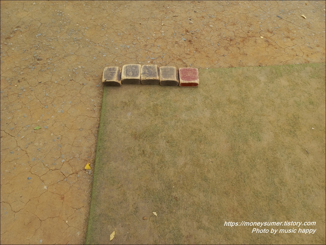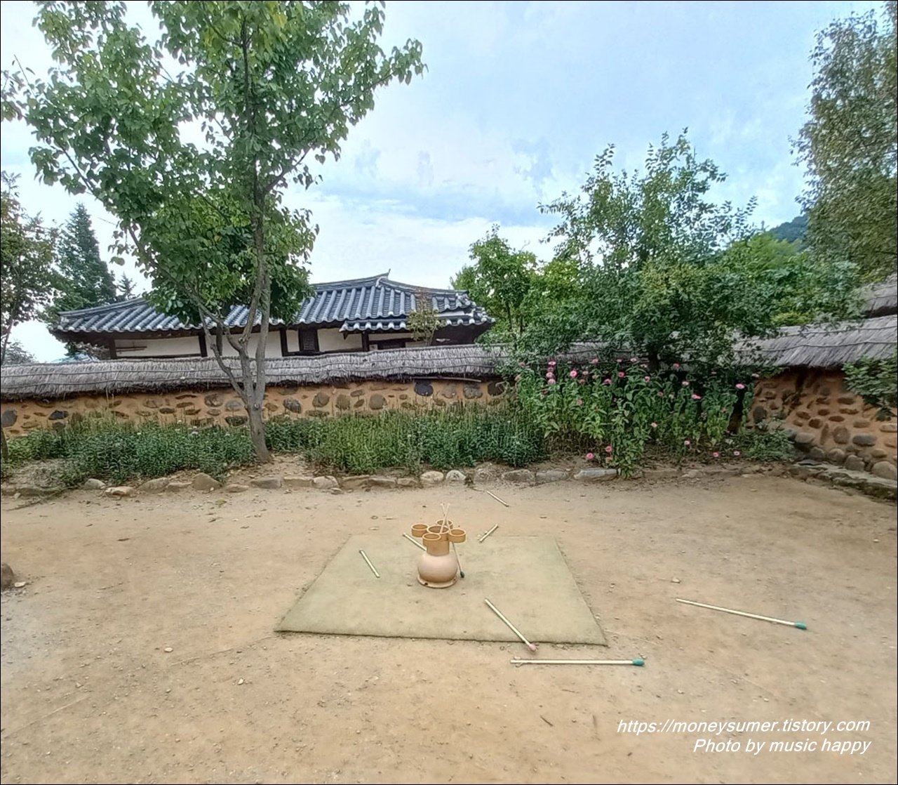 일정한 거리에서 손바닥만 한 작은 돌을 차거나 던져서 상대의 비석을 쓰러뜨리는 비석 치기와 화살통에 화살을 던져 누가 많이 넣는지 겨루는 투호놀이도 비치되어 있어요~