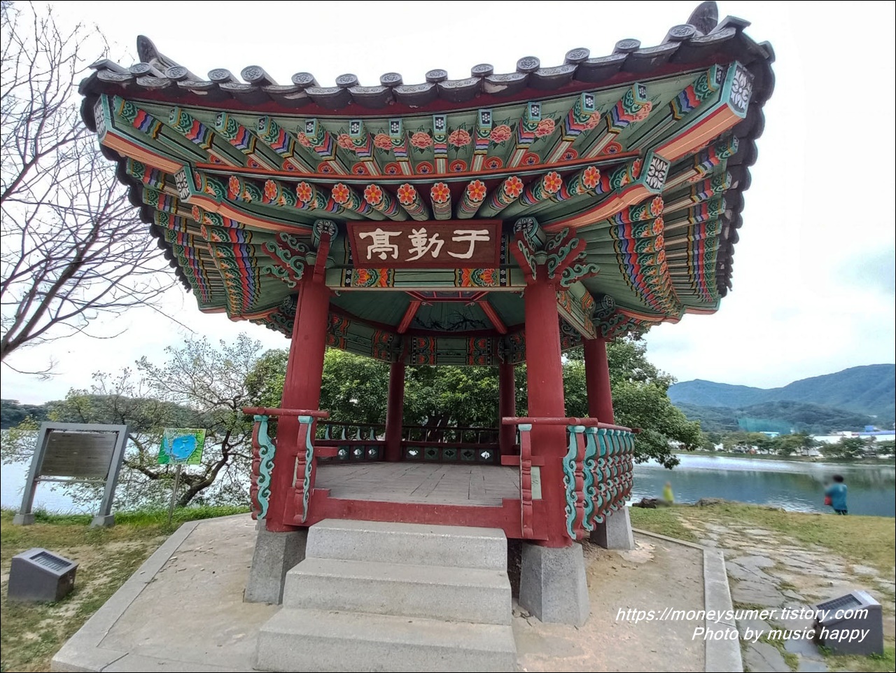 제천시는 2007년 의림지 명소화 사업으로 우륵의 예술 혼을 기리기 위해 옛날 우륵이 가야금을 연주한 이곳에 정자를 건립하고 우륵정(于勒亭)이라 이름 지었다 합니다. 해질녘 서쪽을 배경으로 사진을 찍으면 인생 샷을 건질 수 있다고 하네요~