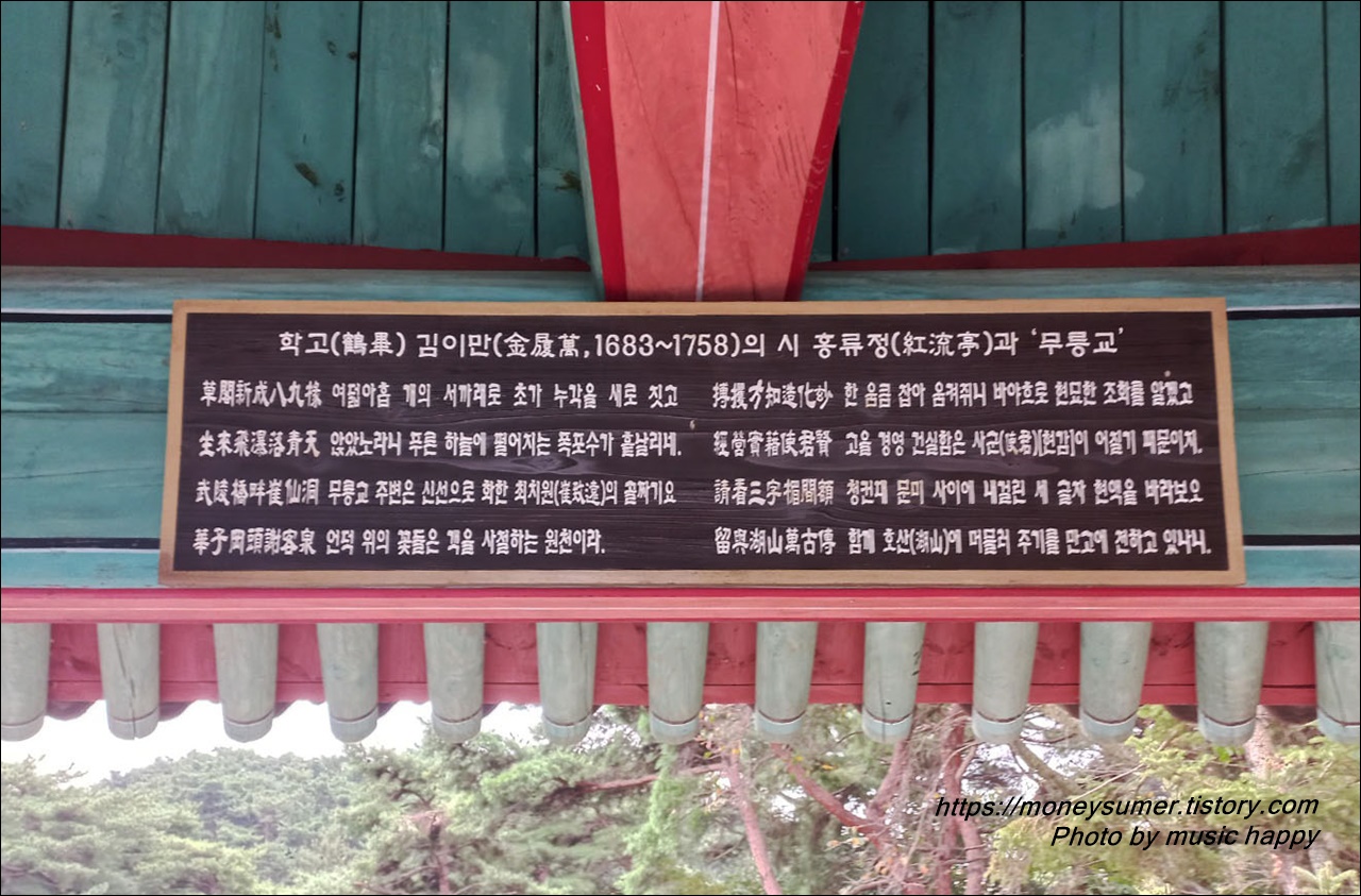 홍류정과 무릉교를 바라보며 지은 학고 김이만의 시가 걸려있네요. 옛 성인들은 어찌 이리도 시를 잘 지었을까요?~👍
