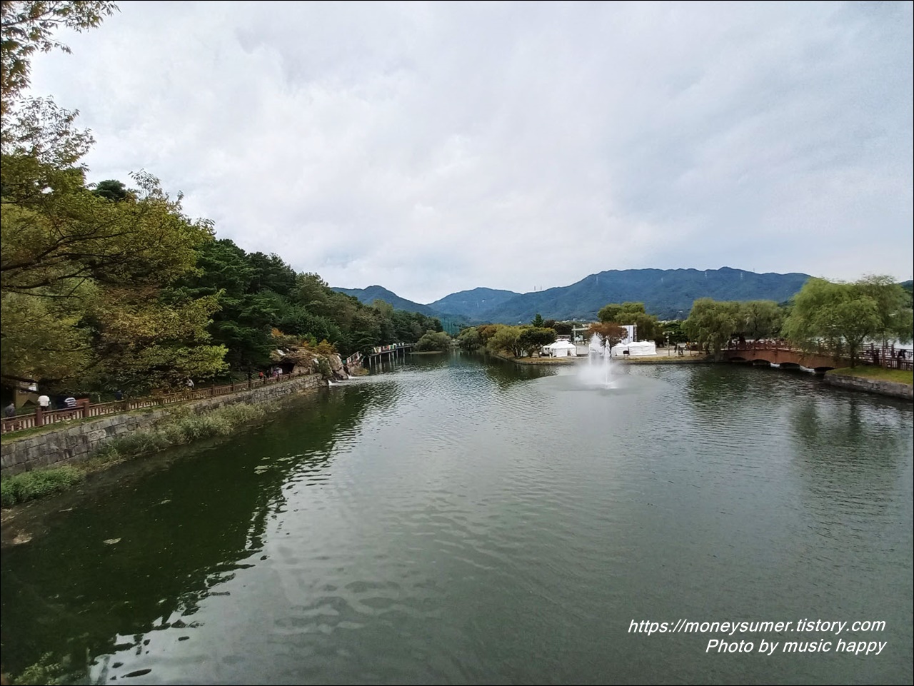 호수 위 분수도 멋진 경치를 자아내는데 한몫하고 있네요~