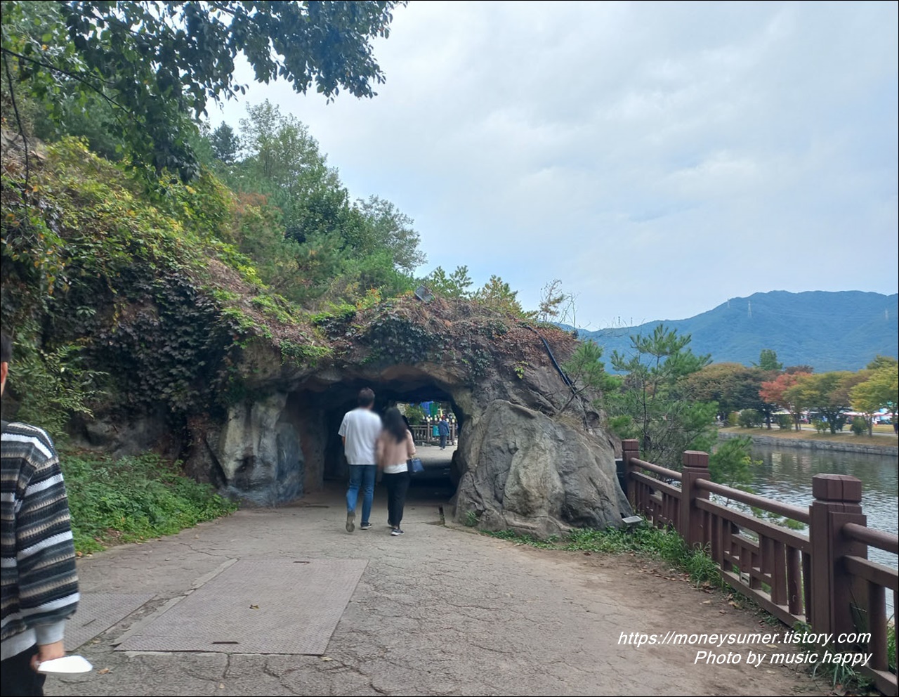 인공폭포 뒤쪽으로 동굴처럼 되어 있는 곳을 지나