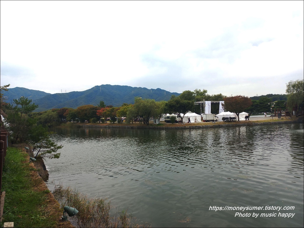 호수 맞은편에 자리 잡고 있는 주차장은 공간이 아주 넓은데도 불구하고 거의 꽉 차 있더라고요~