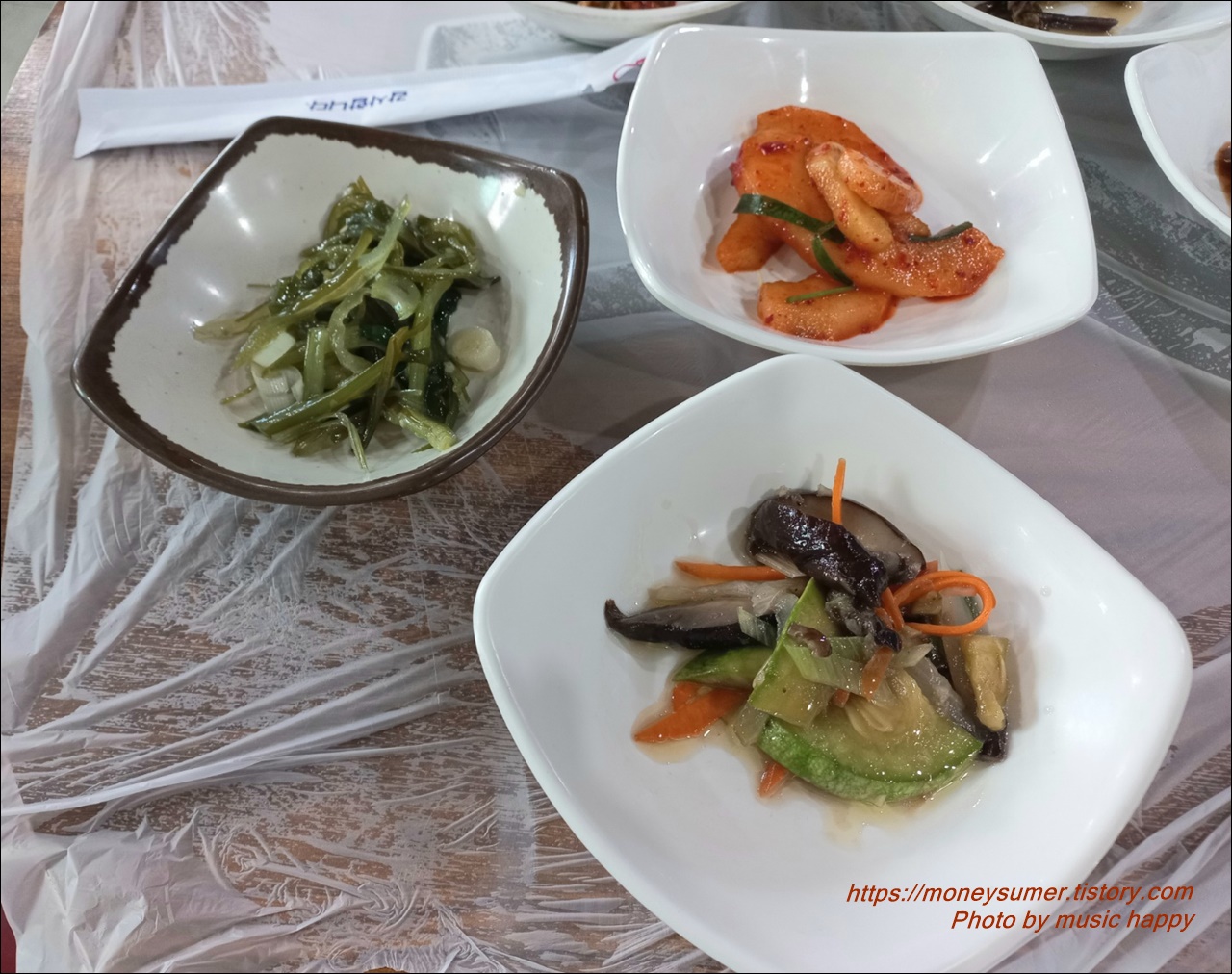 주문을 하고 나니 밑반찬이 세팅되었어요. 건강식 밥상인데 젓가락이 나무젓가락인 점이 좀 아쉽더라고요~
