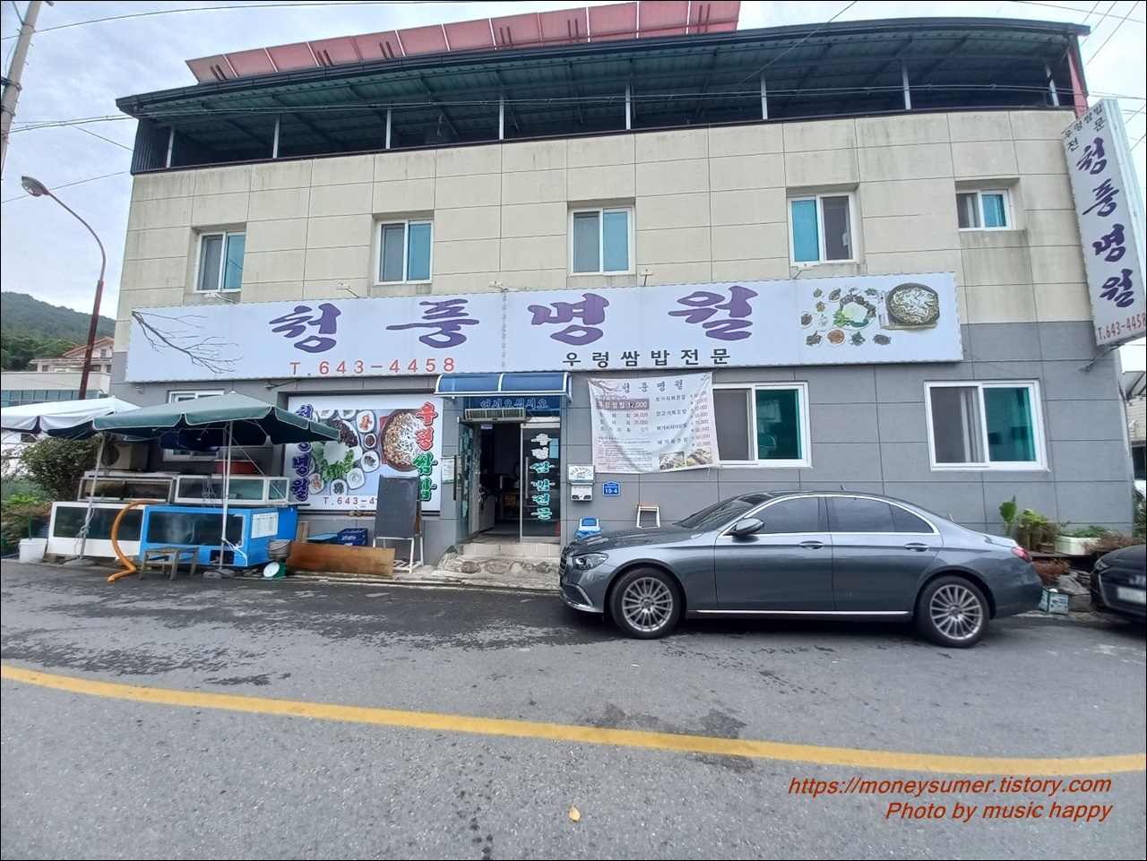 가게 앞 주차는 협소해서 저희는 케이블카 전용주차장에 하고 걸어갔어요. 요즘에는 음식점들도 예쁜 건물들이 많은데 이곳 청풍명월은 그냥 평범한 주택 건물이었어요.