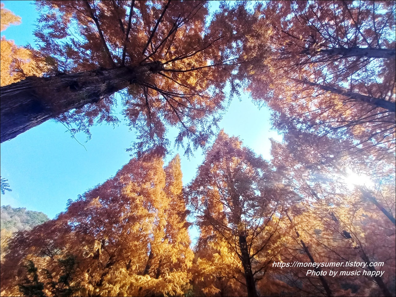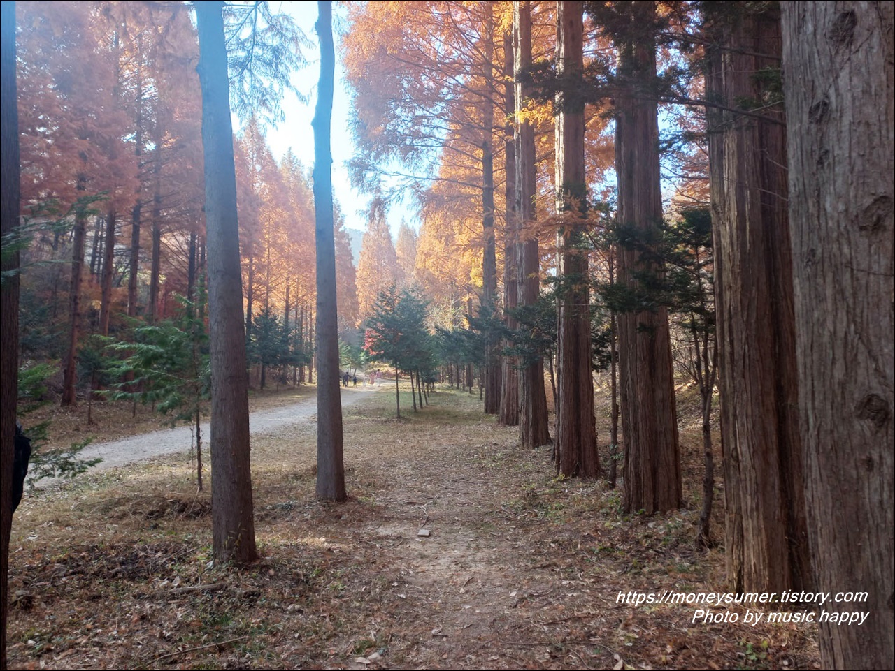 온빛 자연휴양림에는 계속 자라면 아파트 10층을 훌쩍 넘기며 자라기도 한다는 메타세쿼이아 나무가 많은 곳이라 웅장해 보이기도 하네요~