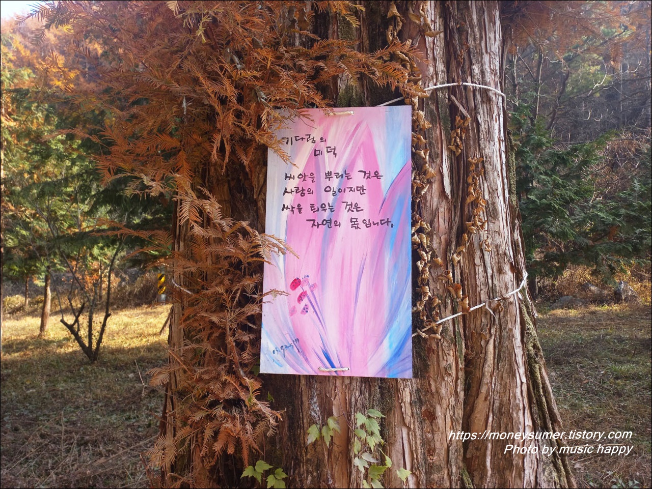 「씨앗을 뿌리는 것은 사람의 일이지만 싹을 틔우는 것은 자연의 몫」이라는 기다림의 미덕에 관한 글귀의 감상을 시작으로 본격적인 온빛 자연휴양림을 즐기러 가봅니다.