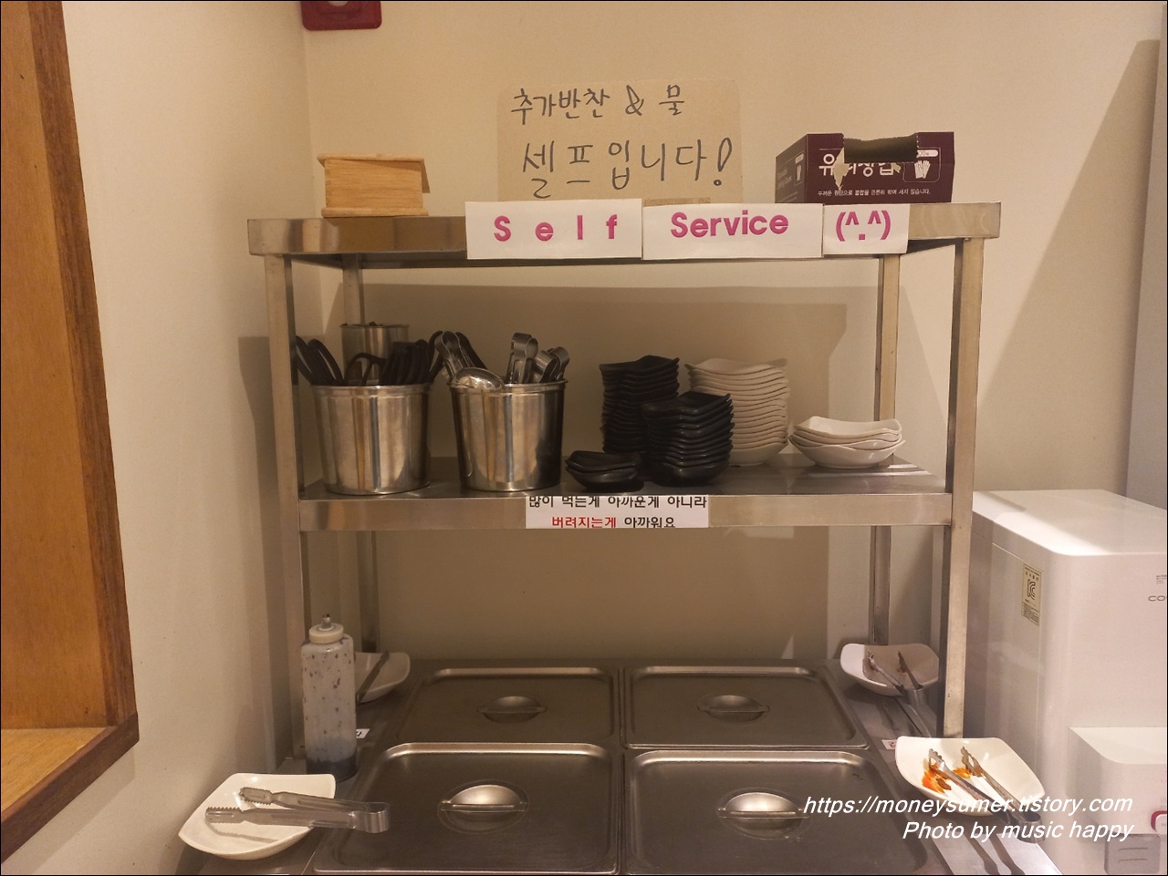 추가 반찬과 물은 셀프코너를 이용하시면 된답니다.