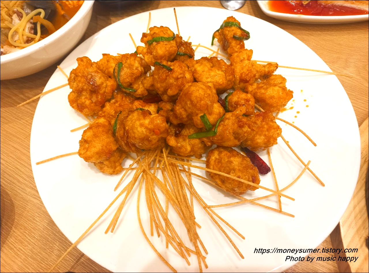 기다랗게 튀겨져 나온 건 아마도 파스타면인 것 같아요. 바삭하니 씹는 맛이 좋아 자꾸 손이 가더라고요. 깐풍기도 두말할 필요 없이 맛있고요.