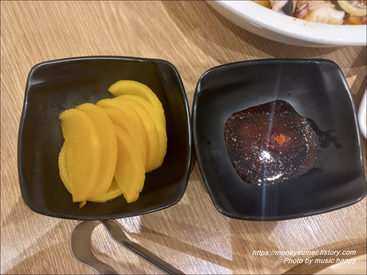 밑반찬으로는 중식에서 흔히 볼 수 있는 단무지와