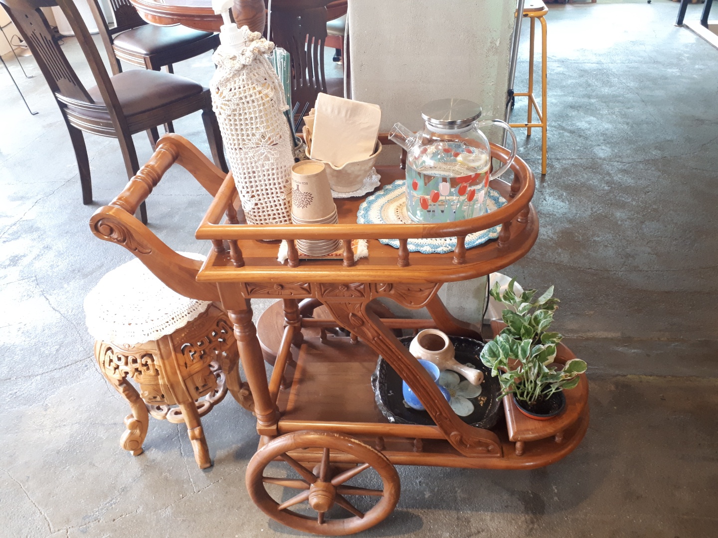 2층에 올라가 보았어요. 오래된 듯한 고풍스러운 가구들이 반겨주는 듯 하네요!