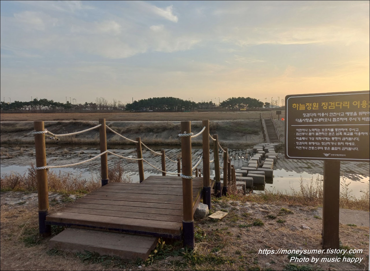하늘정원에는 하늘광장을 비롯해서 전망대와 장미터널, 징검다리 등이 있어요~