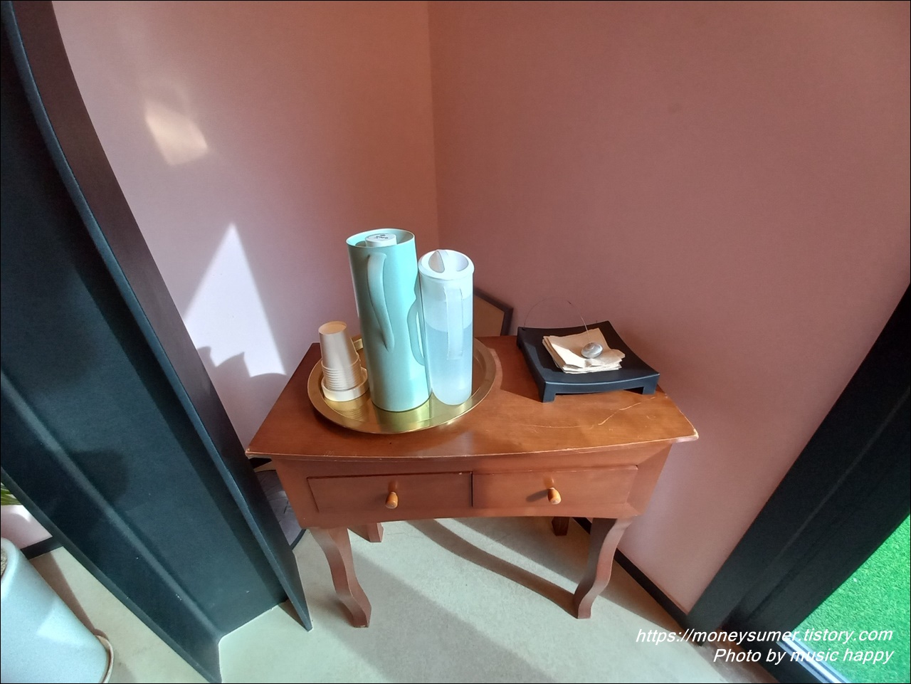 1층에 비치되어 있었던 따뜻한 물과 찬물 그리고 티슈가 2층에도 준비되어 있고