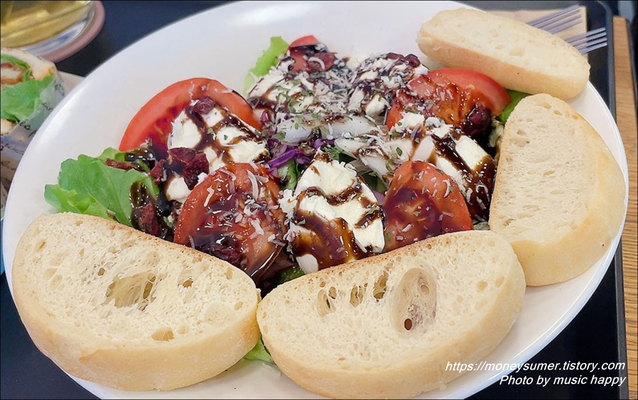 빵 위에 치즈와 야채를 얹어서 먹으니 정말 맛있네요. 빵은 아주 맛있는 편은 아니었지만 그런대로 괜찮은 정도예요.