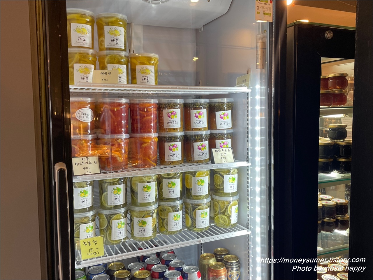 냉장고 안에는 레몬청, 자몽청, 청귤청 등이 있고