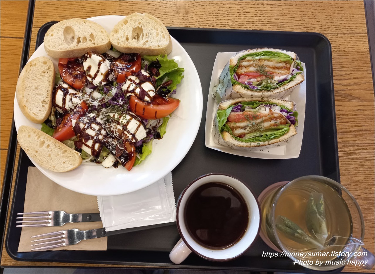아메리카노는 약간 신맛이 나는 커피였어요. 신맛보다는 고소한 맛을 좋아하는 편이라 짝지가 주문한 커피는 토스트 먹을 때 조금 맛보고 제가 주문했던 난꽃향차를 즐겼답니다.