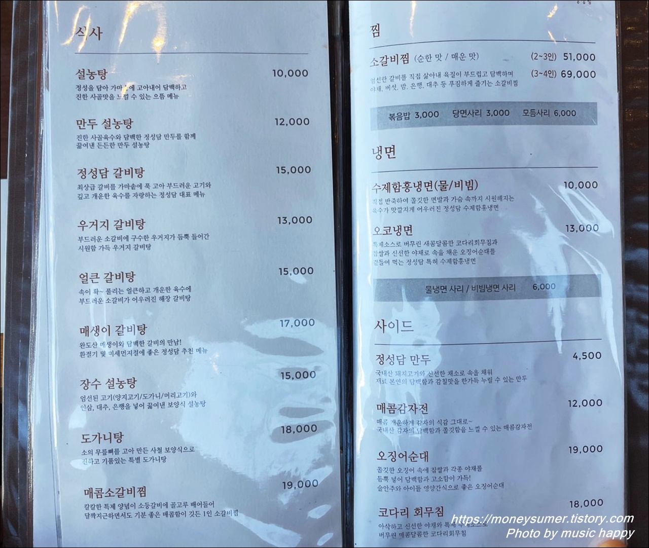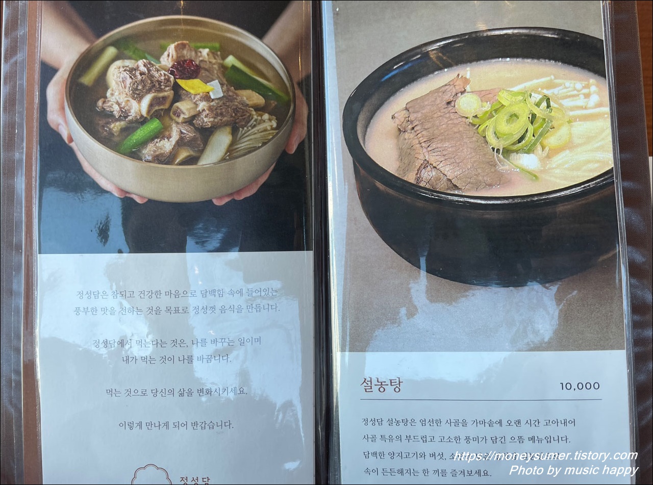 - 설농탕 10,000원 ~ 매콤 소갈비찜 19,000원