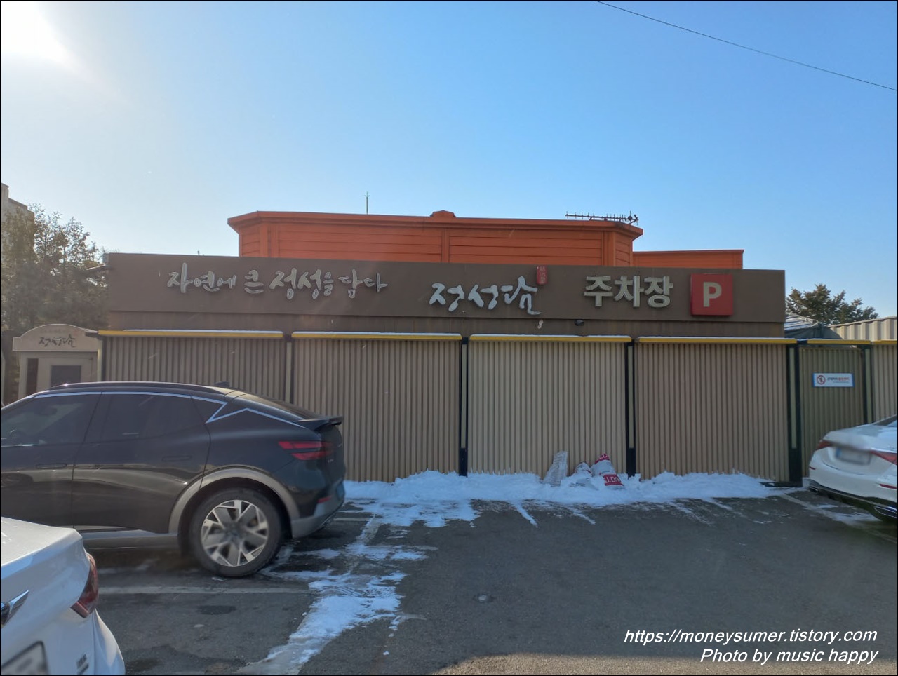 음식점 앞에 넓게 자리 잡고 있는 정성담 주차장에 무료주차를 한 후