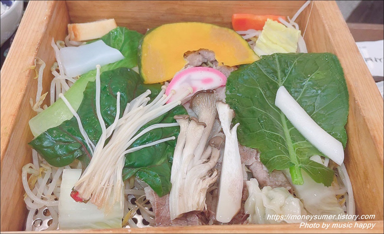 개인별로 음식이 나와서 깔끔하고 위생적이긴 하지만 가격이 좀 비싸다는 생각을 했어요. 다른 샤브샤브집은 죽이나 볶음밥까지 포함된 가격을 이곳에서는 추가주문 해야 했기 때문에 그 점이 좀 아쉽더라고요. 그 점을 제외하고는 직원 친절도나 음식맛 재료의 신선함은 대체로 만족했답니다.
