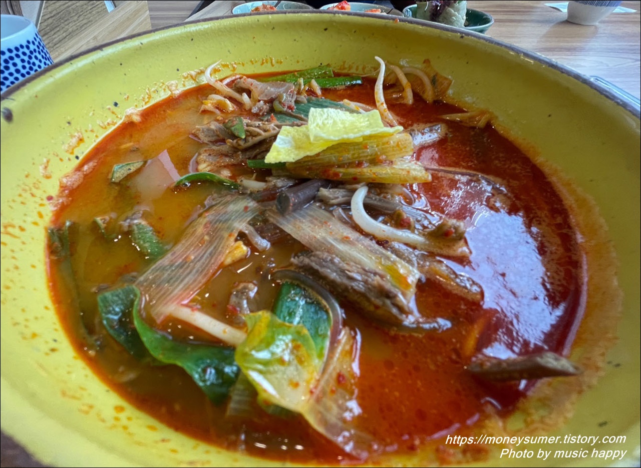 육개장 맵기 정도는 보통맛과 순한 맛을 선택할 수 있어요. 저희는 보통맛이었는데 우리 입맛에는 좀 맵더라고요. 간은 많이 짜지 않고 적당하고 신선한 재료가 듬뿍 들어가 있어서 좋았어요.