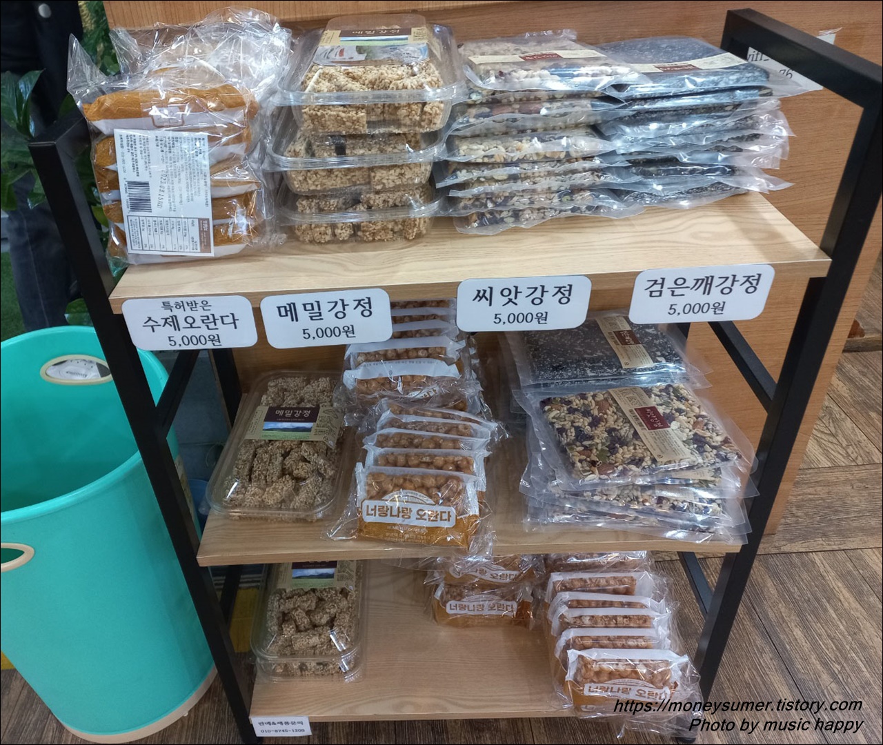 계산을 하러 나가려다 보니 카운터 앞에 수제오란다, 메밀강정, 씨앗강정, 검은깨강정이 5,000원에 판매되고 있네요.