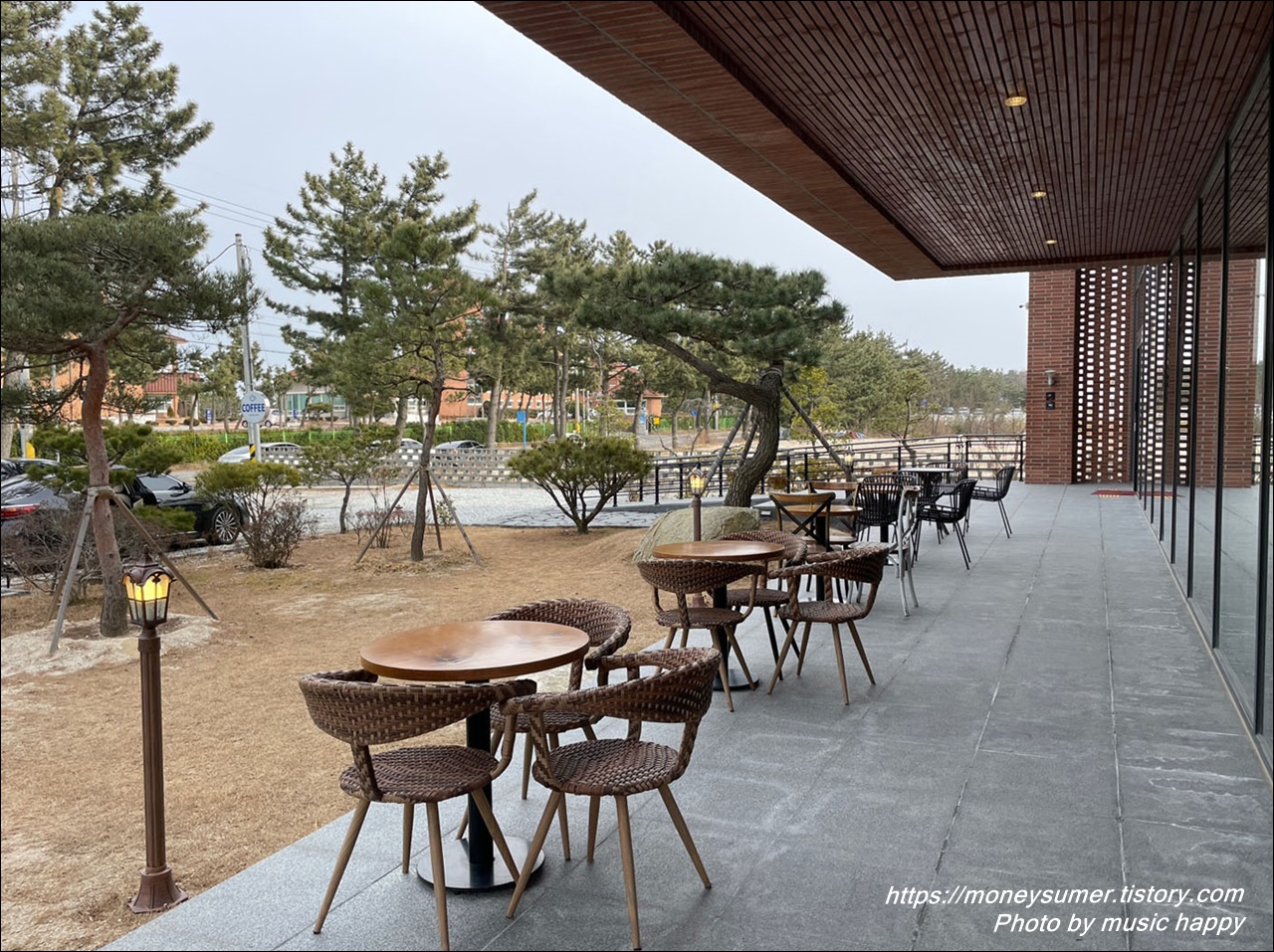 정문 앞에 야외테이블도 많이 마련되어 있네요. 지금은 겨울이라 추워서 이용하는 분들은 거의 없었지만 따뜻한 날에는 이곳이 인기가 많을 것 같아요~