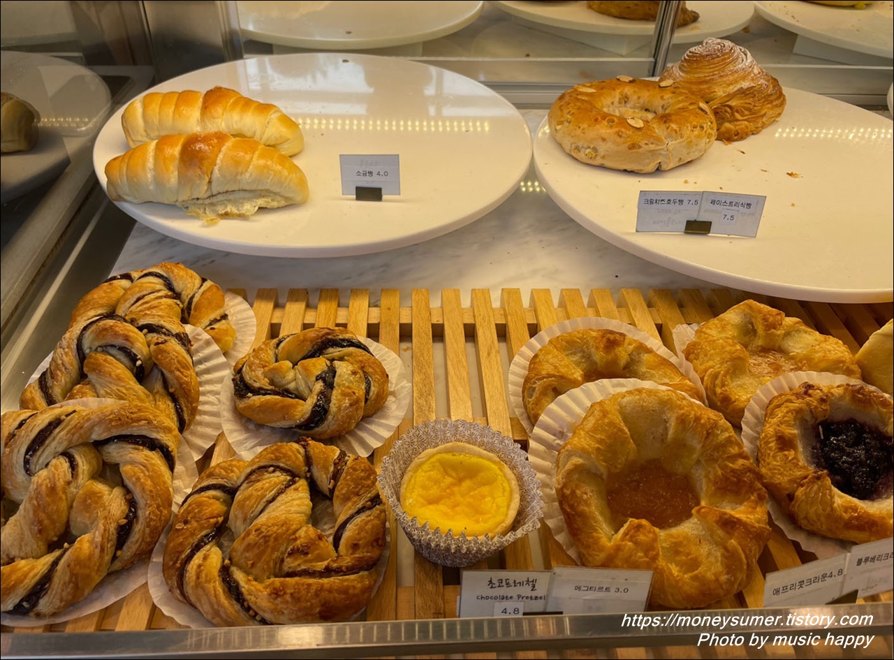 소금빵, 크림치즈호두빵, 초코프레첼, 에그타르트,