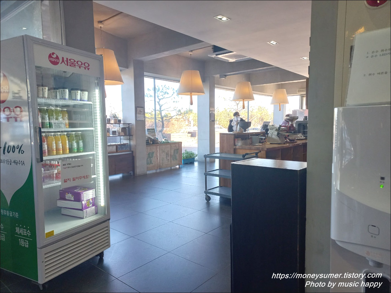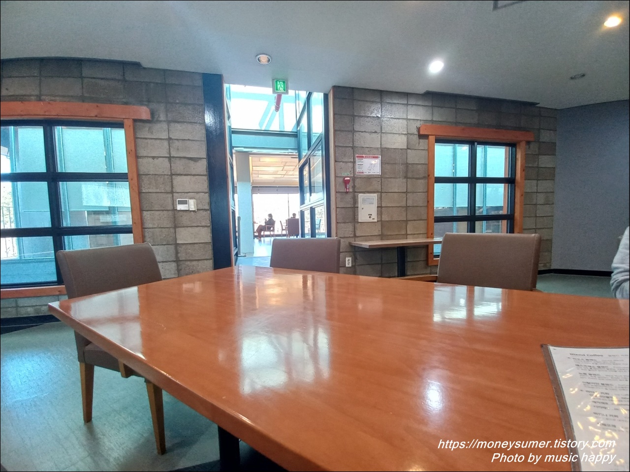 건물외관은 특별히 예쁘다거나 독특하진 않고 평범한 편이네요. 하지만 1층부터 3층까지 통유리로 되어 있어서 외부경치를 보기에는 좋을 것 같아요~
