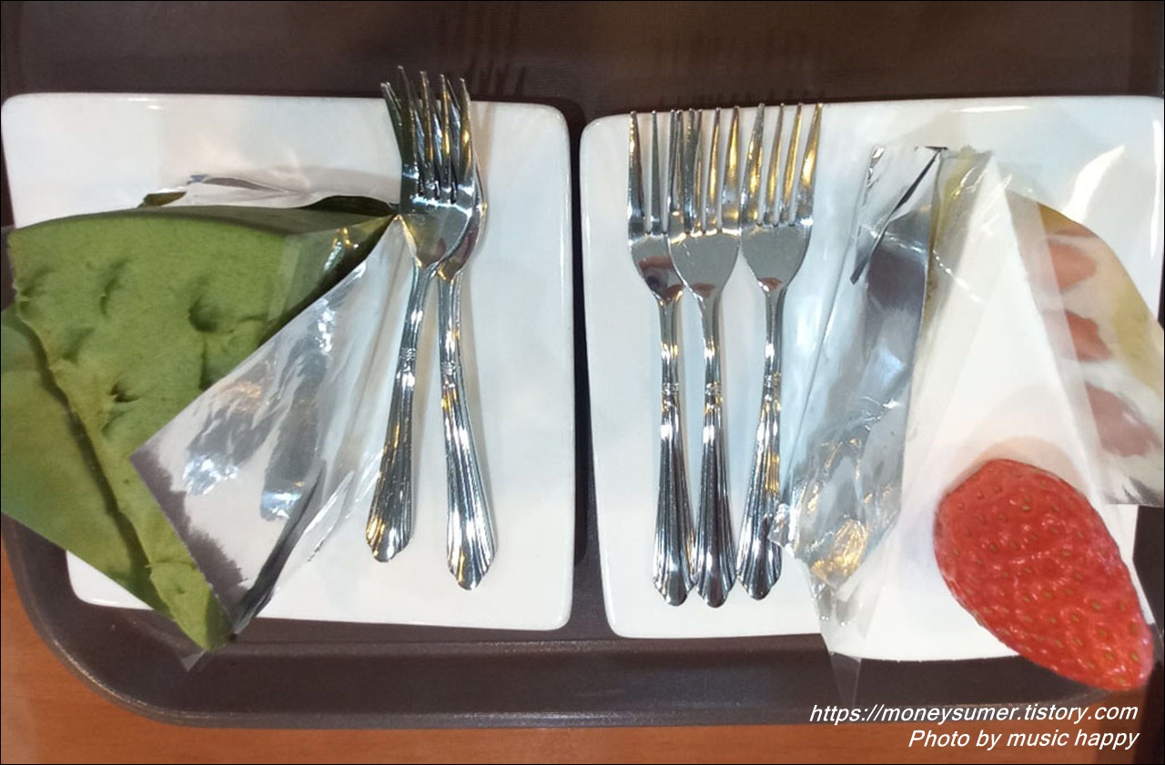 맛은 후레즈케이크가 더 달콤해서 맛있었는데 건강에는 말차케이크가 더 좋을 것 같아요~