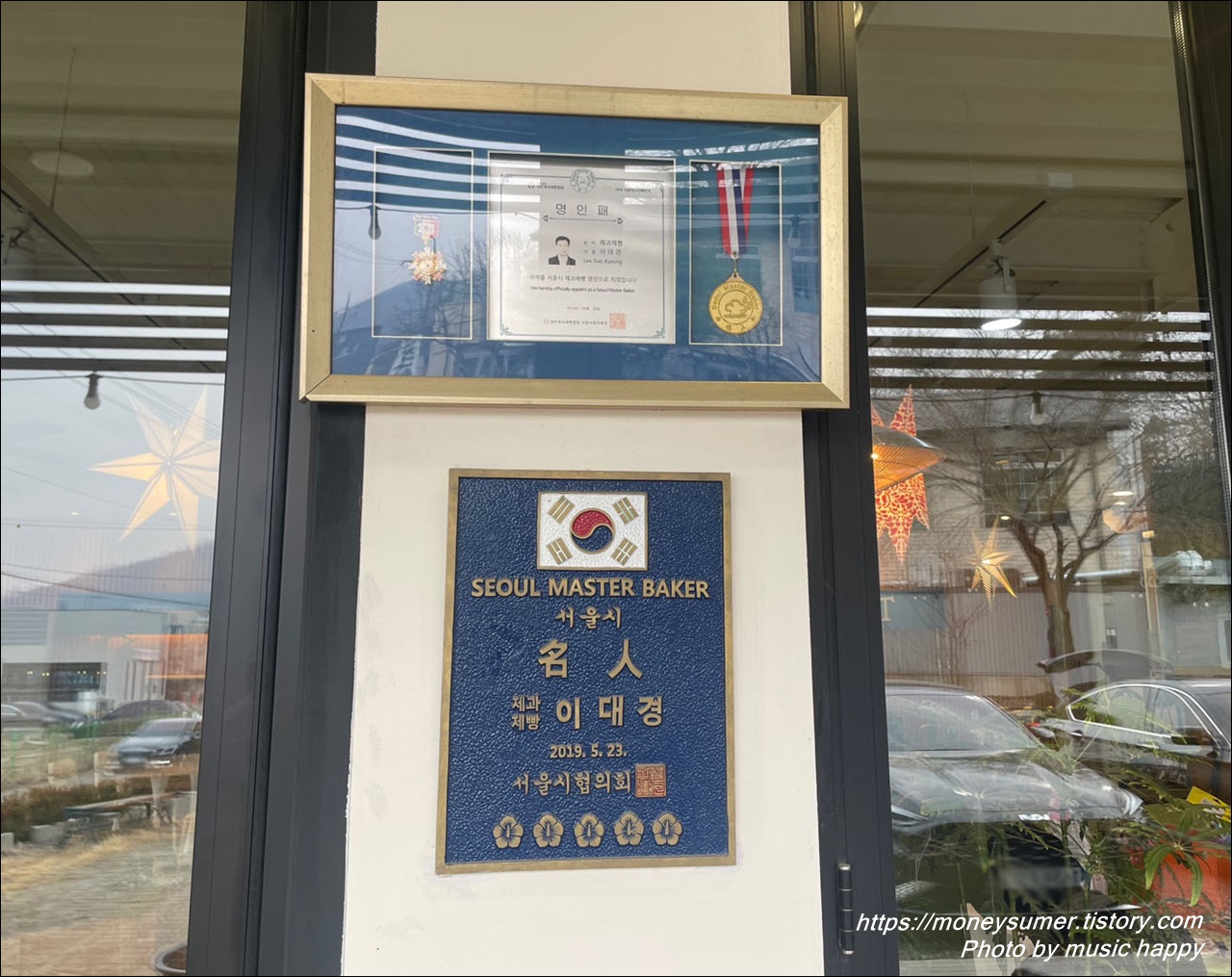 카페 안으로 들어가기 전 명인패가 보이네요. 서울시에서 지정한 제과제빵 명장인 이대경 님이 운영하는 카페라고 합니다.